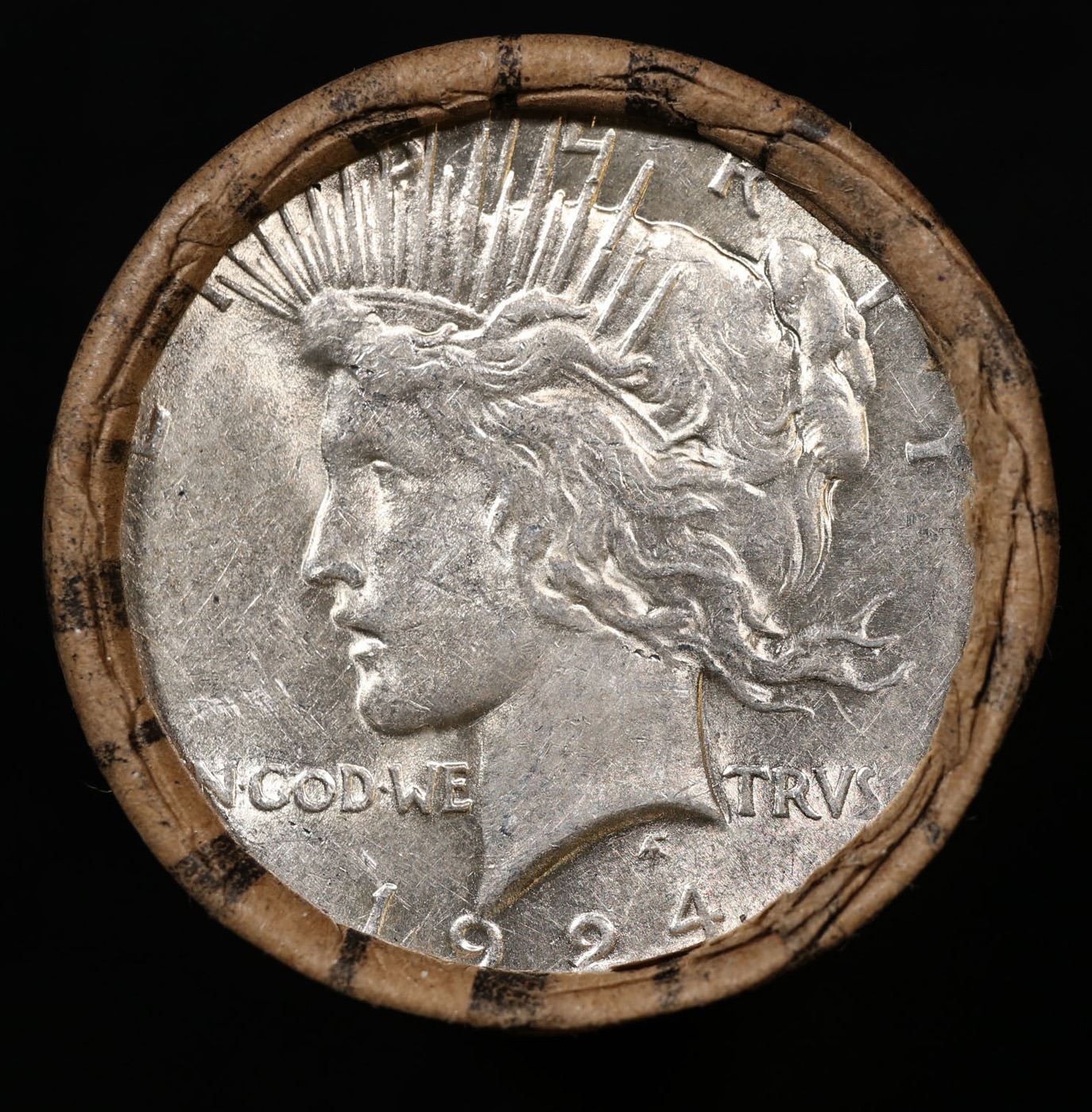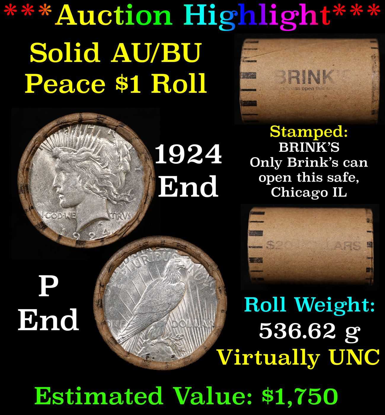 ***Auction Highlight*** AU/BU Slider Brinks Shotgun Peace $1 Roll 1924 & 'P' Ends Virtually UNC (fc