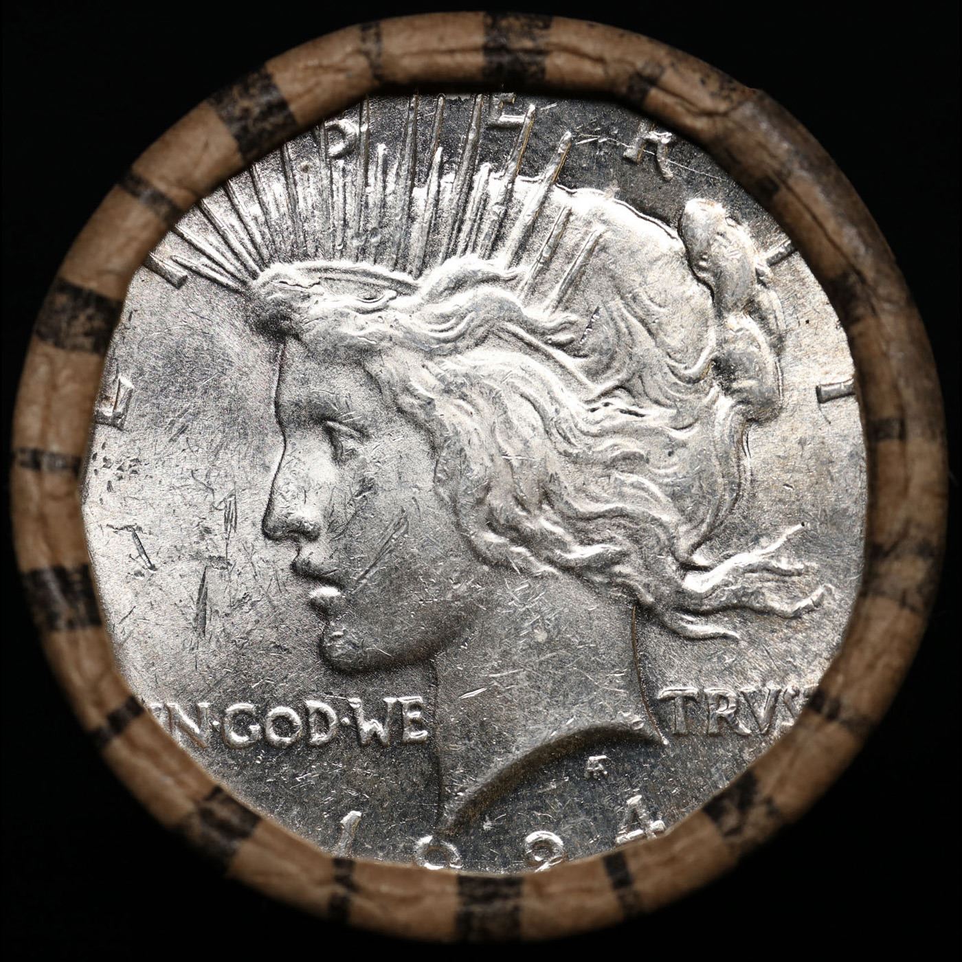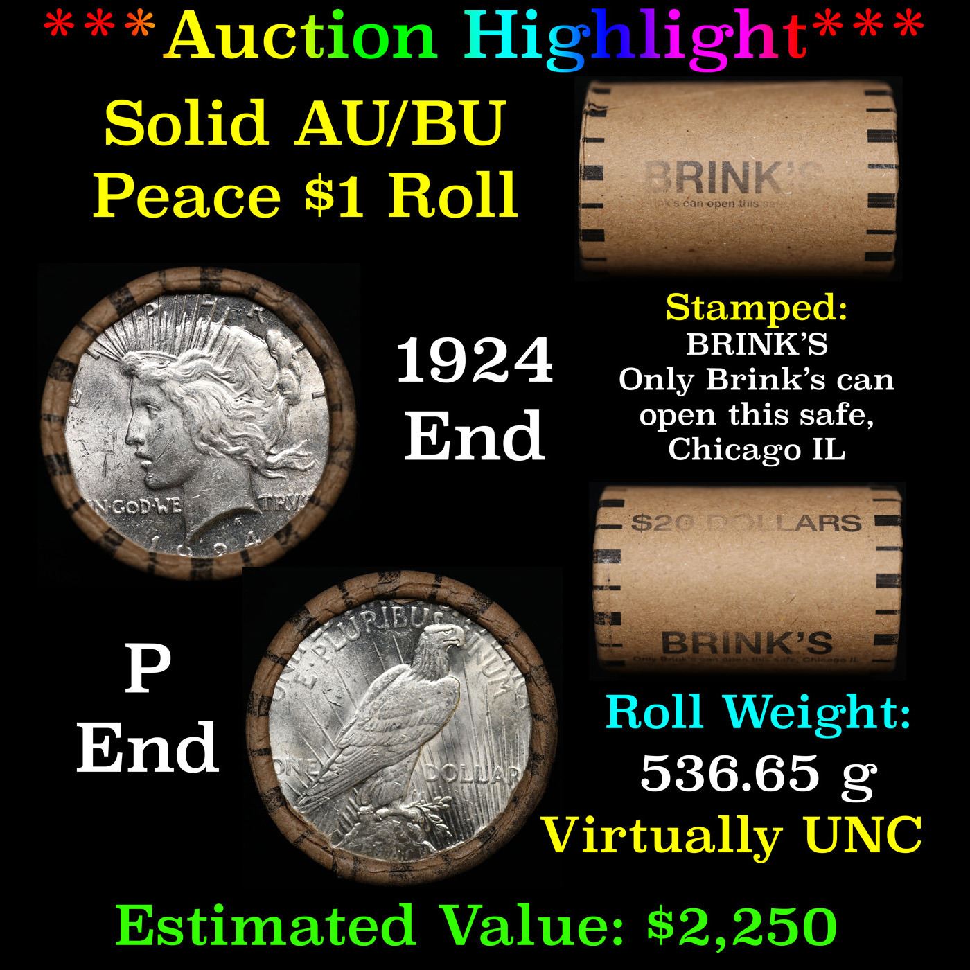 ***Auction Highlight*** AU/BU Slider Brinks Shotgun Peace $1 Roll 1924 & 'P' Ends Virtually UNC (fc