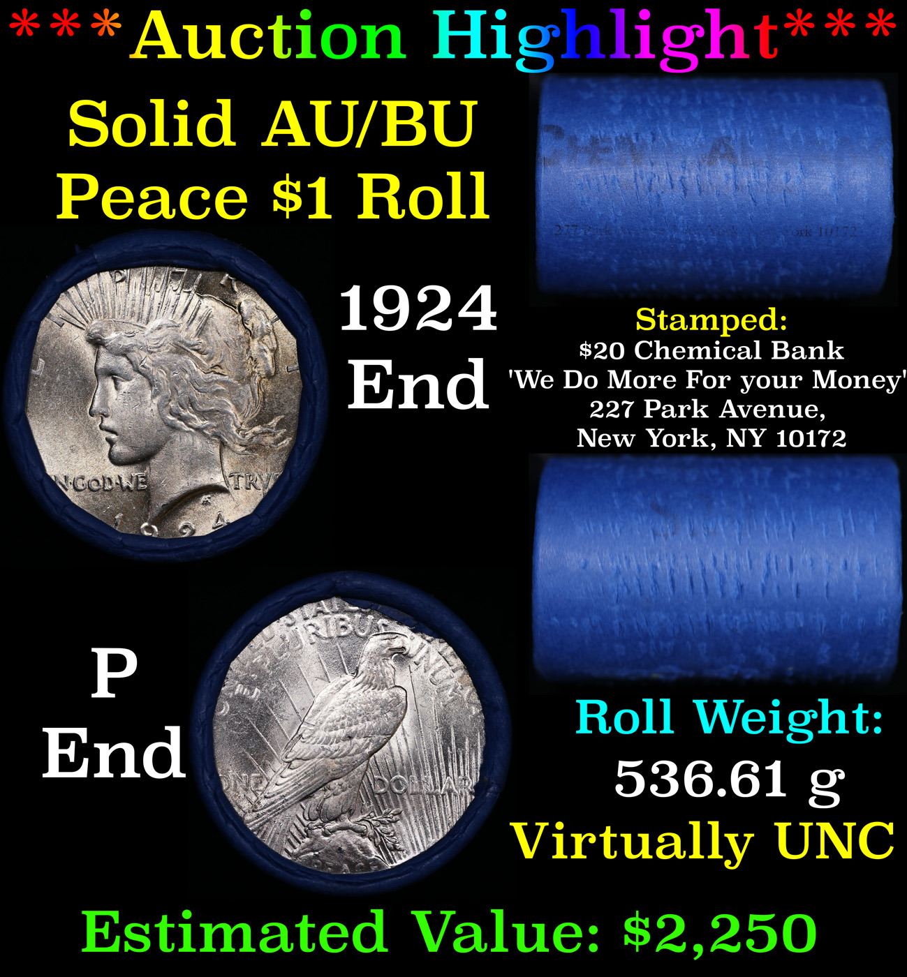 ***Auction Highlight*** AU/BU Slider Chemical Bank Shotgun Peace $1 Roll 1924 & P Ends Virtually UNC