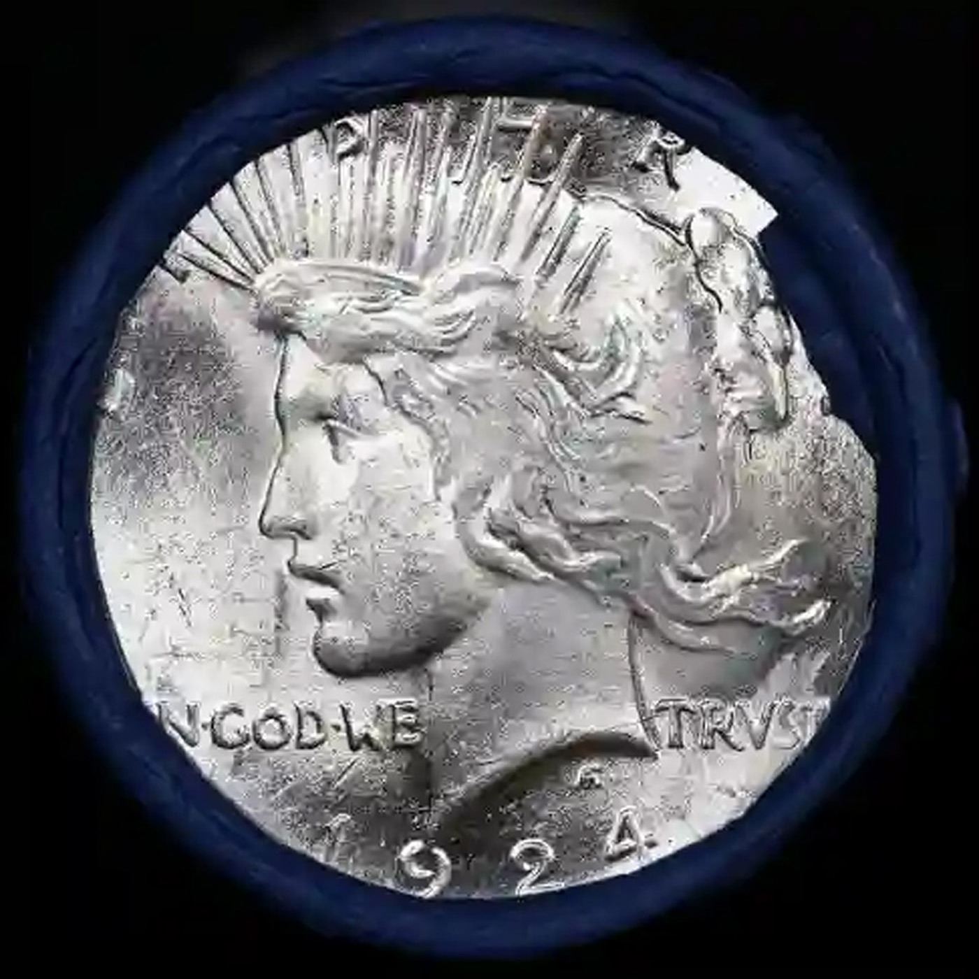 ***Auction Highlight*** AU/BU Slider Chemical Bank Shotgun Peace $1 Roll 1924 & P Ends Virtually UNC