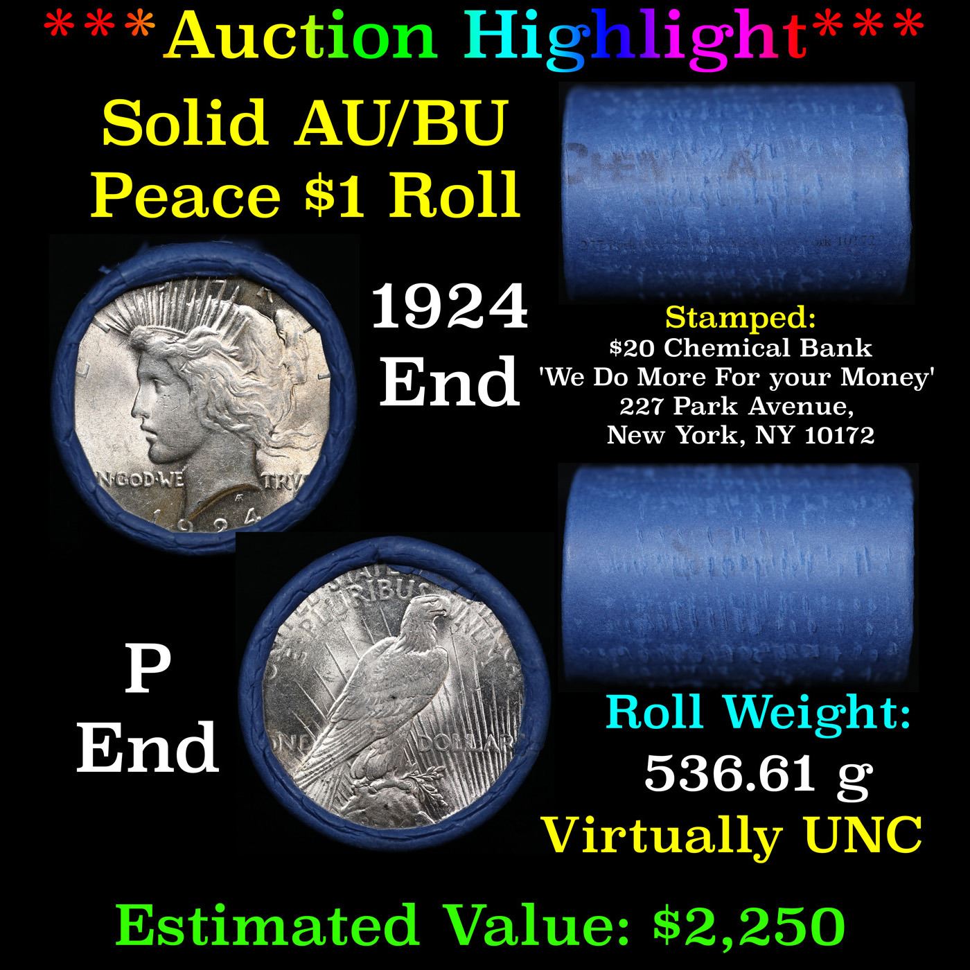 ***Auction Highlight*** AU/BU Slider Chemical Bank Shotgun Peace $1 Roll 1924 & P Ends Virtually UNC