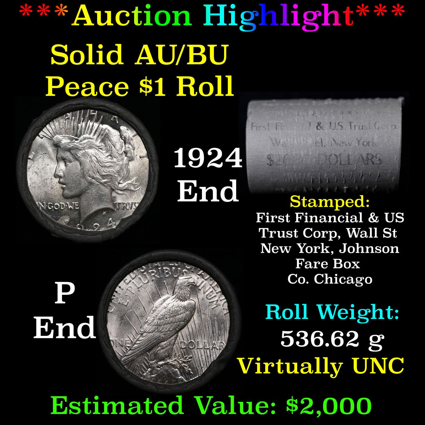 ***Auction Highlight*** AU/BU Slider First Financial Shotgun Peace $1 Roll 1924 & P Ends Virtually U