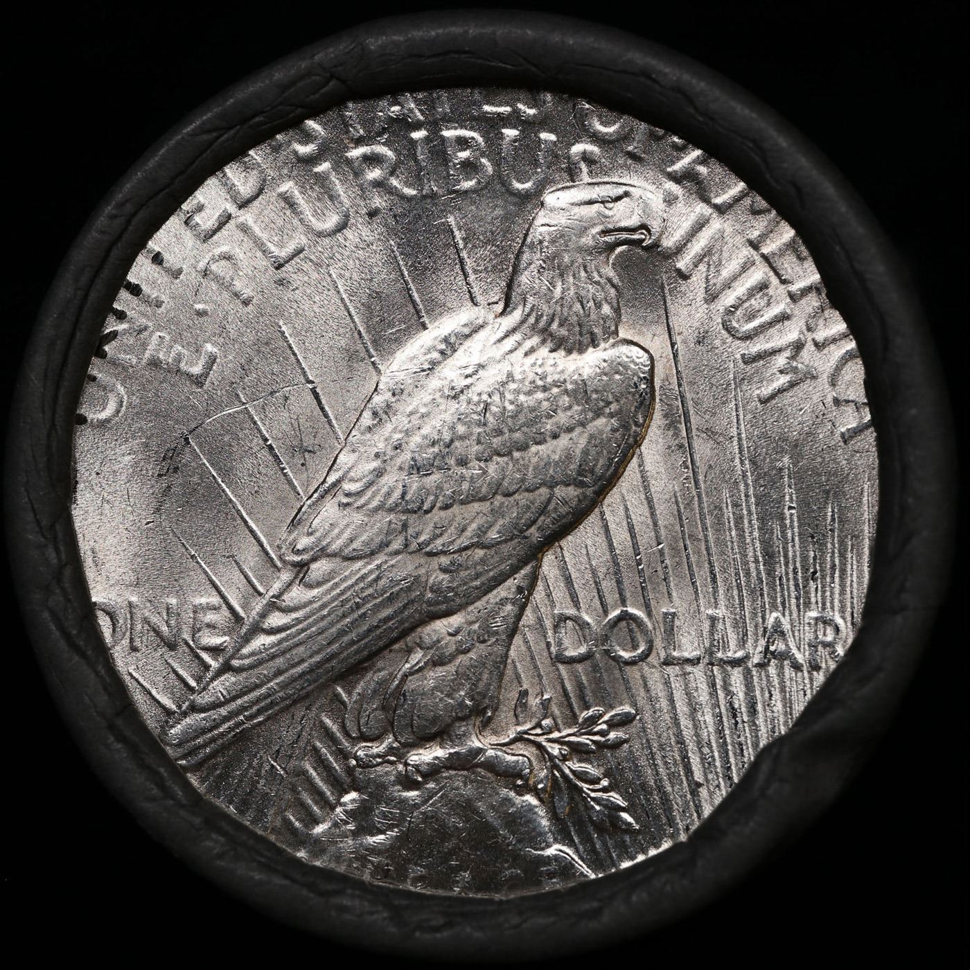 ***Auction Highlight*** AU/BU Slider First Financial Shotgun Peace $1 Roll 1924 & P Ends Virtually UNC. Up For Auction Is a Very Near Solid Uncirculated Peace Dollar Roll In an old Chemical Bank 'We Do More For your Money' 227 Park Avenue, New York, NY 10172 Wrapper with Tight Shotgun Ends. This Roll is filled with Virtually all Uncirculated Silver Dollars. This is how we determined that. A Uncirculated Peace Dollar a Weights 26.73 Grams. So 20 of them would weigh, 534.6 Grams. Our Uncirculated Roll Weighs 536.54 Grams, so the Wrappers weigh 2.1 Grams. The Roll at hand weighs 536.52 Grams. Deducting the Wrapper Weight of 2.1 Grams, the average coin in this roll weights 26.72 Grams. Your going to find in this roll a lot of Uncirculated coins and a few sliders. This is a Very Near Solid roll of Uncirculated Peace Dollars.