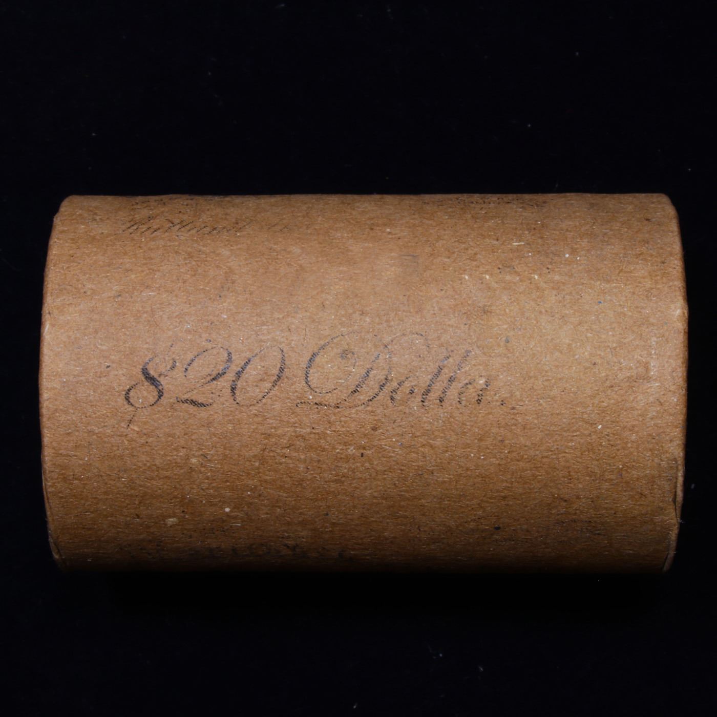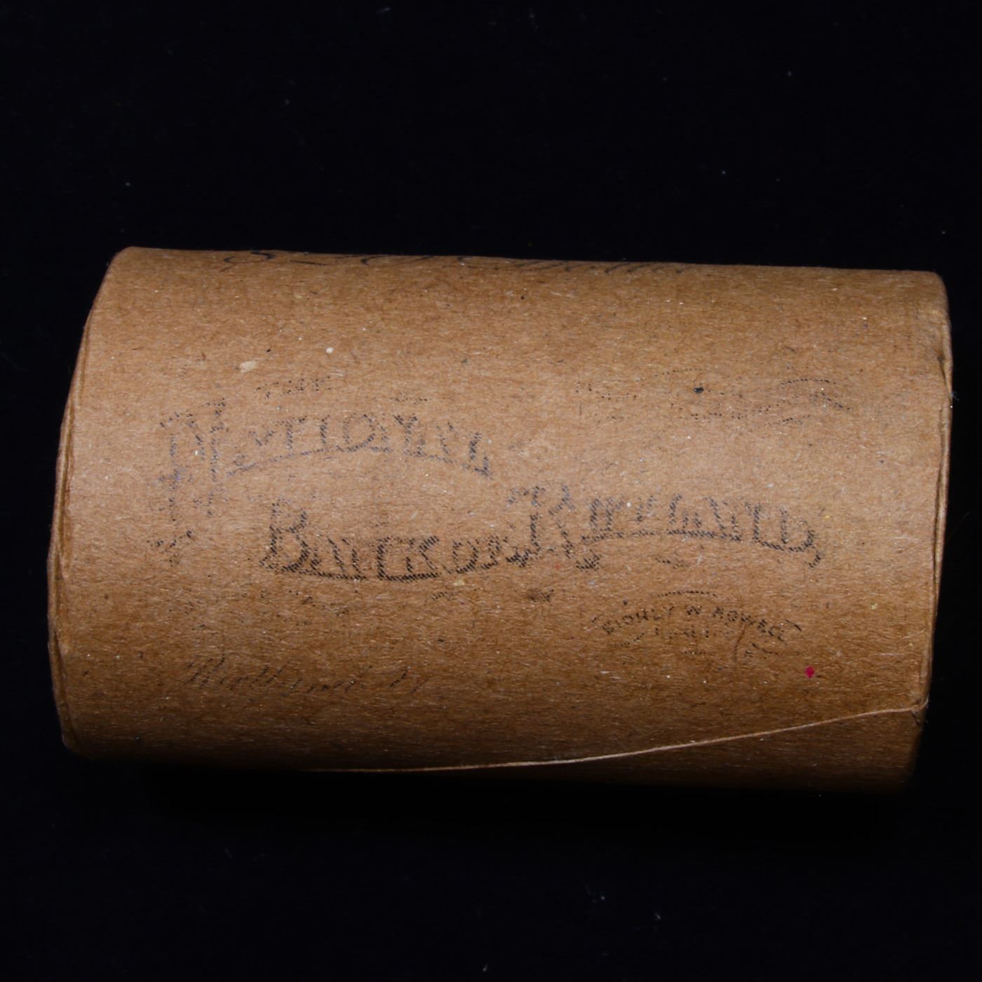 ***Auction Highlight*** AU/BU Slider Rutland Shotgun Morgan $1 Roll 1885 & P Ends Virtually UNC. Up For Auction Is a Very Near Solid Uncirculated Morgan Dollar Roll In an old National Bank Of Rutland Wrapper with Tight Shotgun Ends. This Roll is filled with Virtually all Uncirculated Silver Dollars. This is how we determined that. A Uncirculated Morgan Dollar a Weights 26.73 Grams. So 20 of them would weigh, 534.6 Grams. Our Uncirculated Roll Weighs 536.7 Grams, so the Wrappers weigh 2.1 Grams. The Roll at hand weighs 536.2 Grams. Deducting the Wrapper Weight of 2.1 Grams, the average coin in this roll weights 26.72 Grams. Your going to find in this roll a lot of Uncirculated coins and a few sliders. This is a Very Near Solid roll of Uncirculated Morgan Dollars.