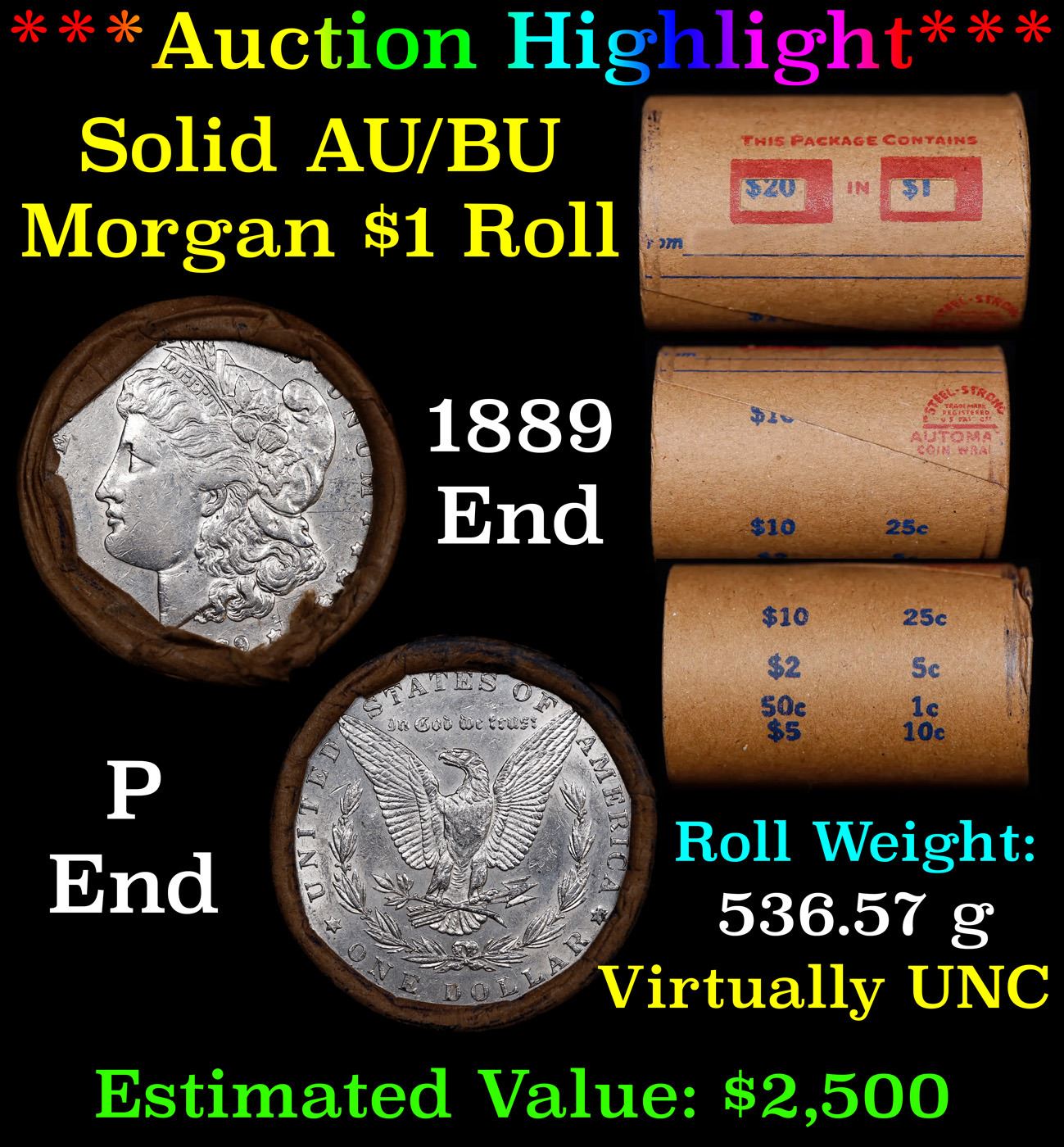 ***Auction Highlight*** AU/BU Slider Shotgun Morgan $1 Roll 1889 & P Ends Virtually UNC (fc)
