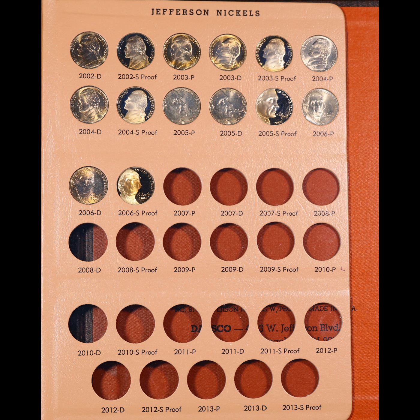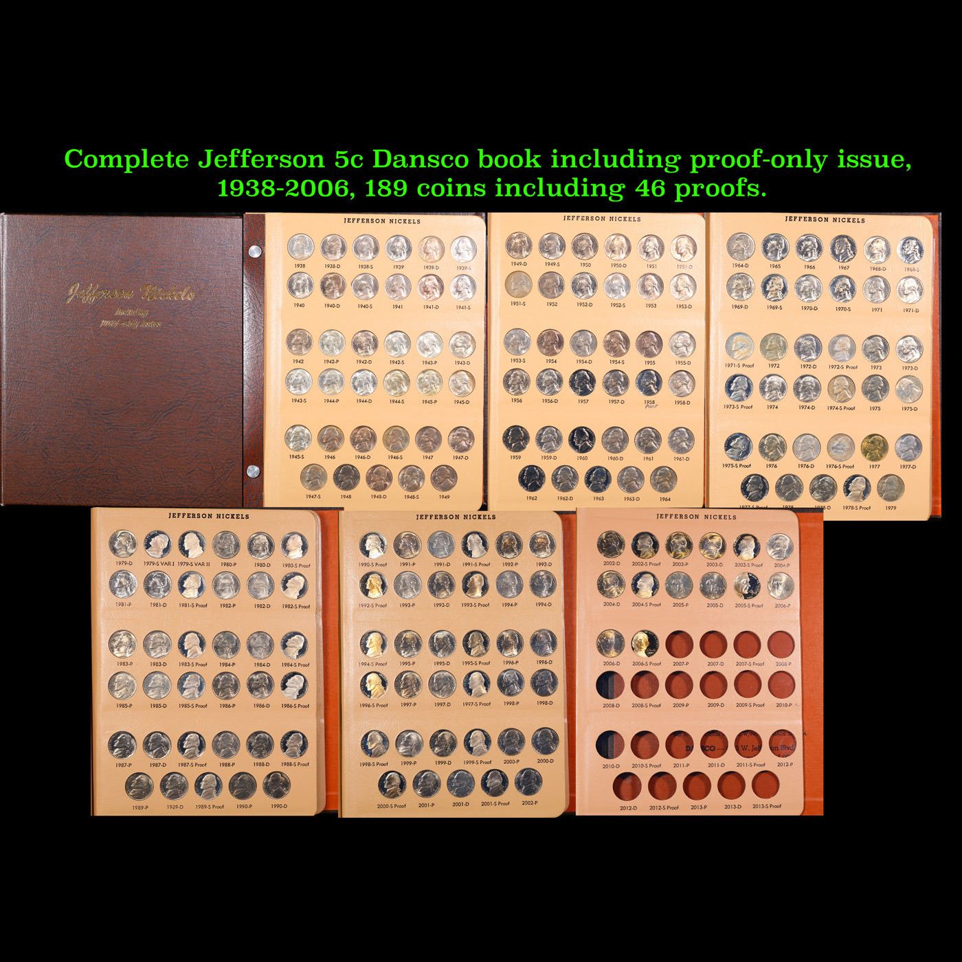 ***Auction Highlight*** Complete Jefferson 5c Dansco book including proof-only issue, 1938-2006, 189 coins including 46 proofs.. All coins encased in a nice Dansco Jefferson Nickle book. Date Range from 1938-2006. A fantastic grouping of 189 coins including 46 proofs.