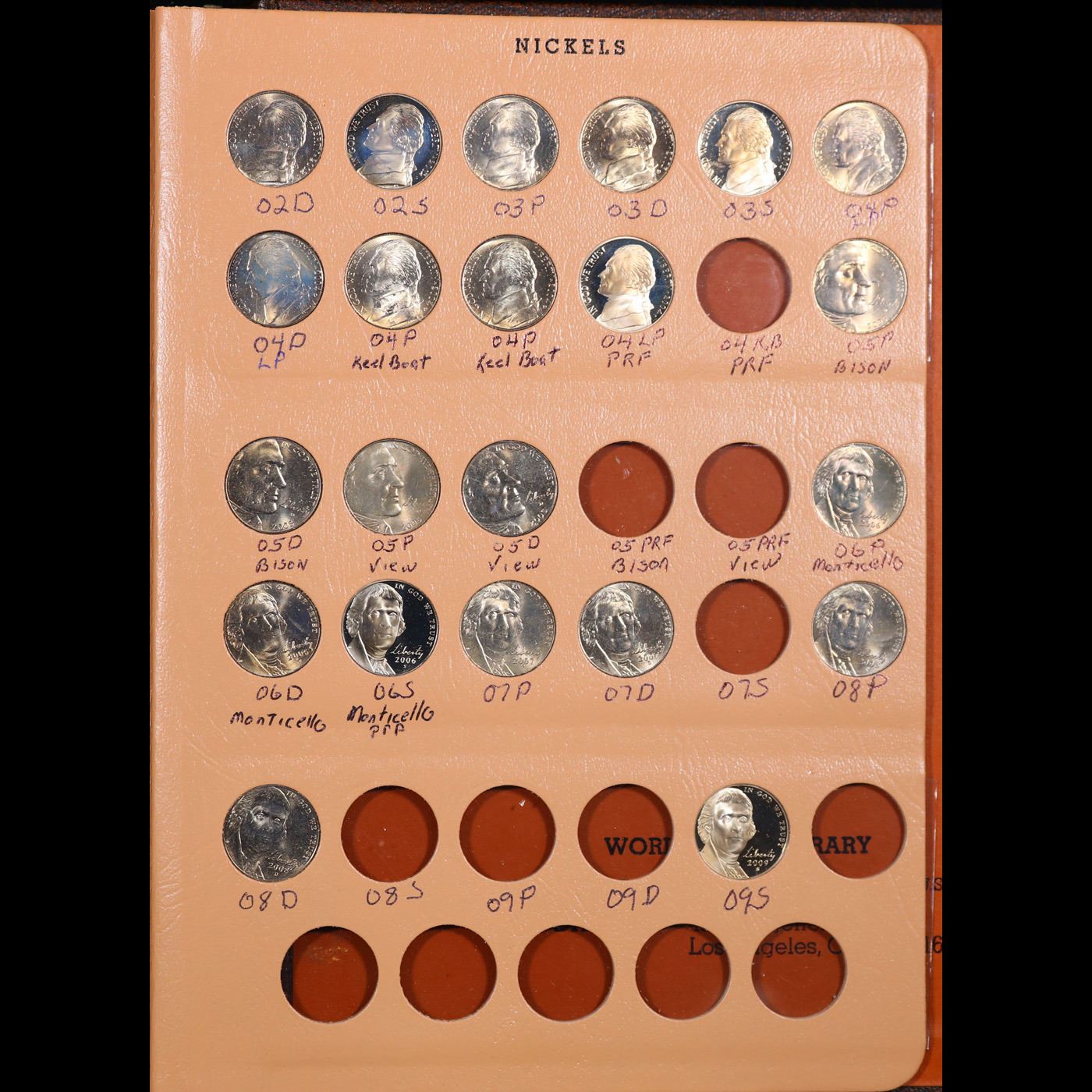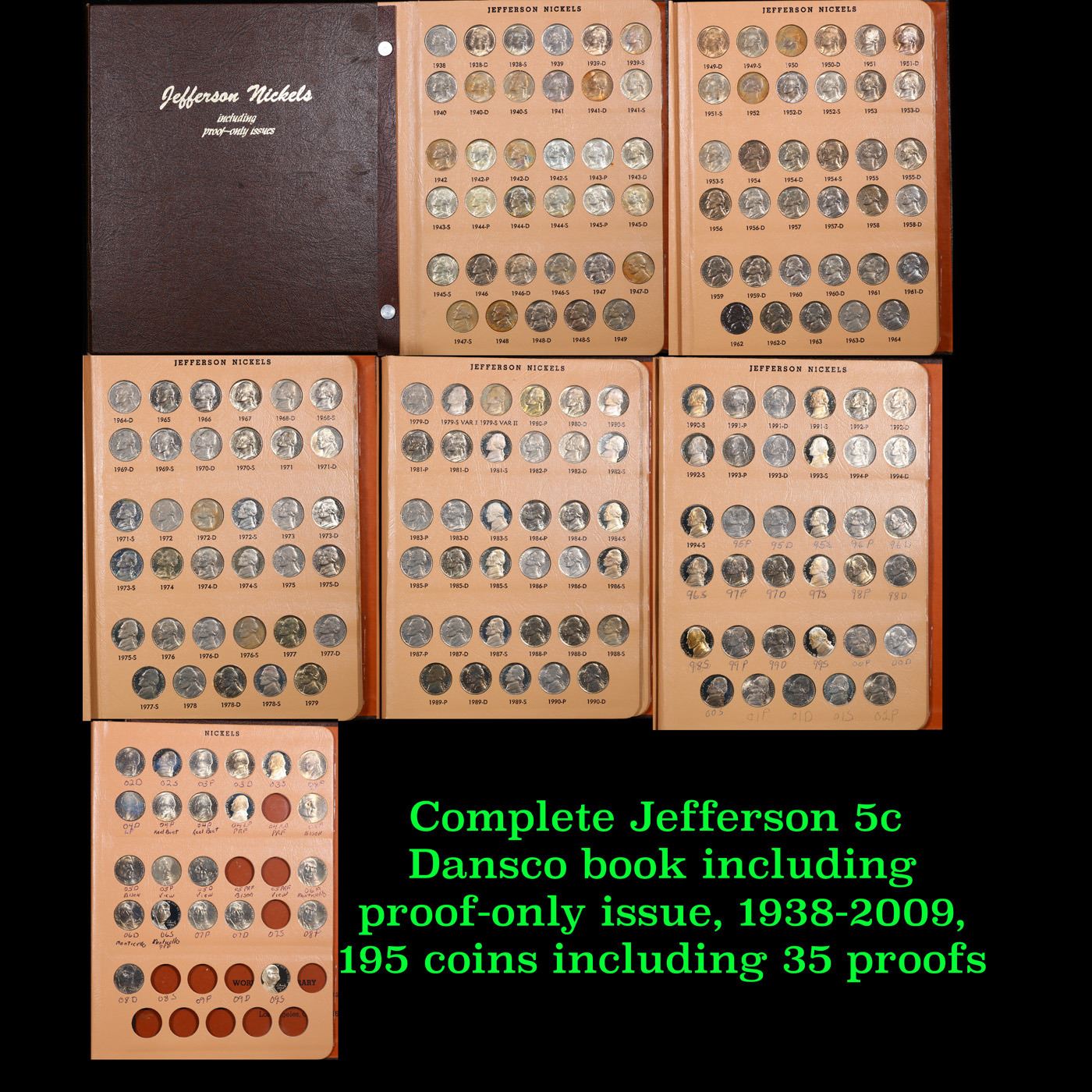 ***Auction Highlight*** Complete Jefferson 5c Dansco book including proof-only issue, 1938-2009, 195 coins including 35 proofs.. All coins encased in a nice Dansco Jefferson Nickle book. Date Range from 1938-2009. A fantastic grouping of 195 coins including 35 proof.