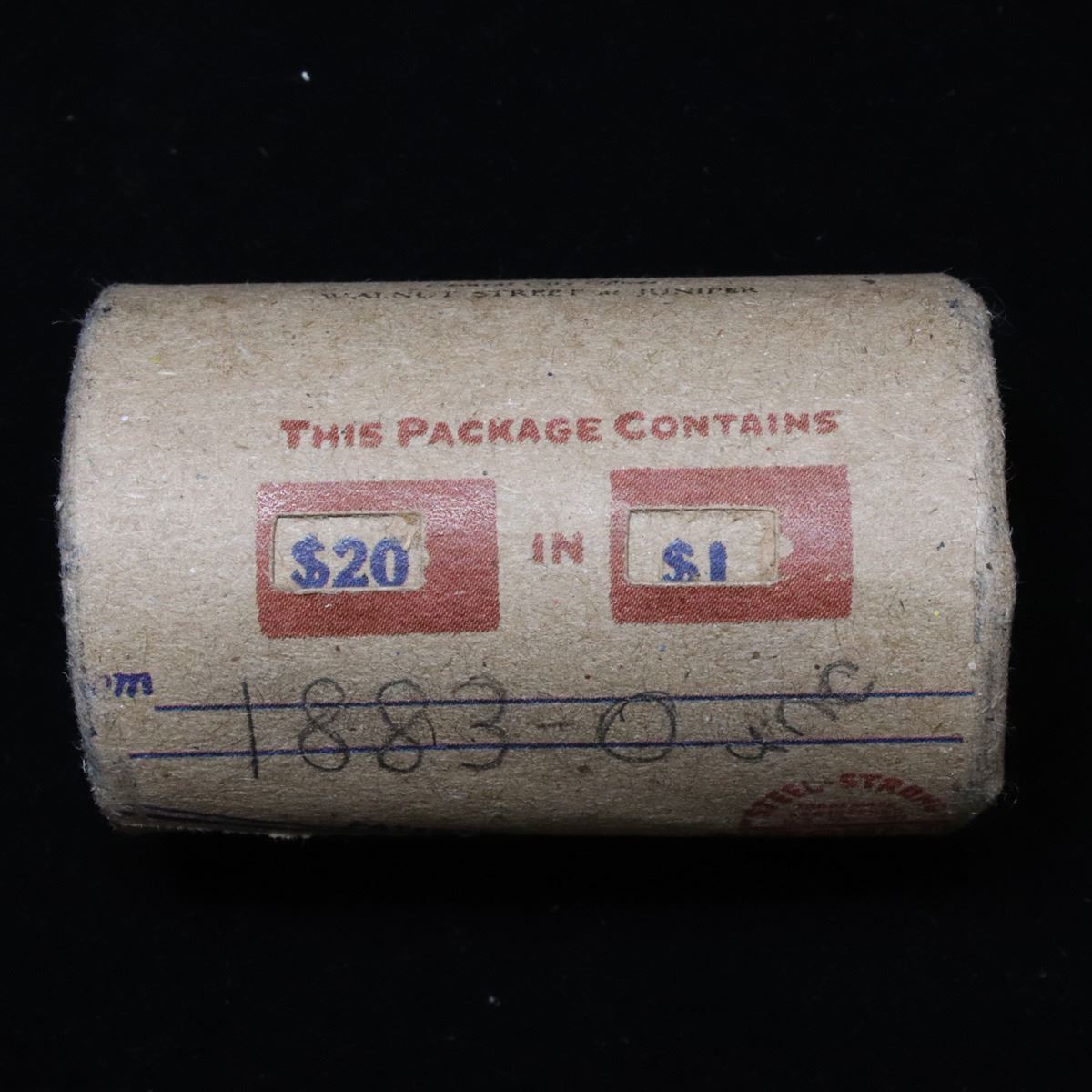 ***Auction Highlight*** Full UNCIRCULATED solid date 1883-o Morgan silver $1 roll, 20 coins . This roll is held in an old Steel strong wrapper, patented 1921, stamped "Bankers Trust Company of PhiladelphiaÓ, Walnut Street at Juniper. This roll contains 20, UNCIRCULATED 1883-o Morgan silver Dollars. The coins may range from Unc to Gem++ with the average being ms64. This is a PQ original bank roll hand marked 1883-o Unc. We have weighed the roll and can assure you that it weighs perfectly at 534.60 grams and is an UNCIRCULATED roll and that all 20 coins are 1883-o. We recently Acquired a large Estate Hoard of solid date Rolls. Trends lists ms64 at $85.