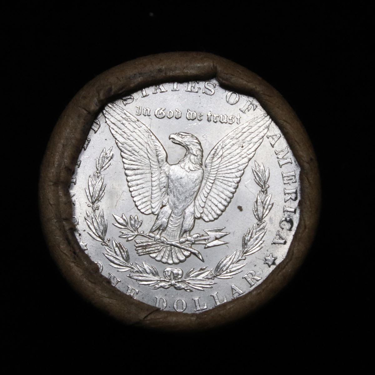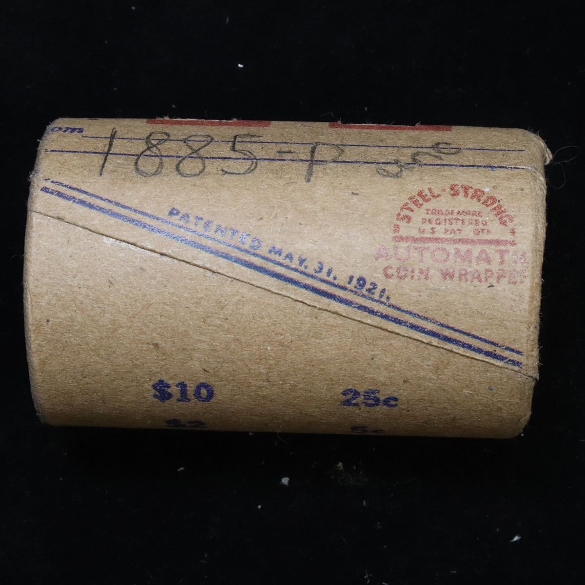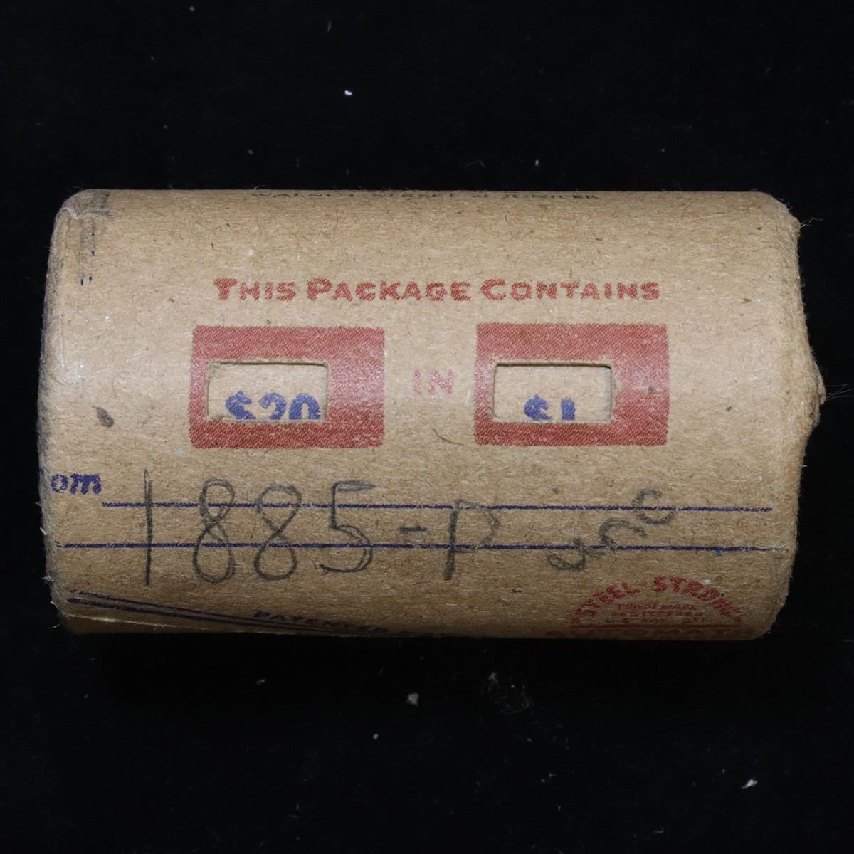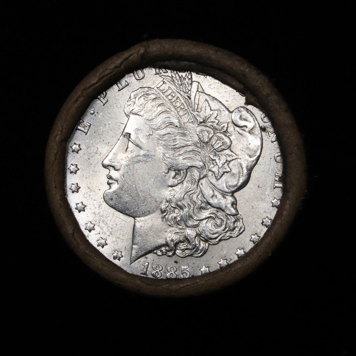 ***Auction Highlight*** Full UNCIRCULATED solid date 1885-p Morgan silver $1 roll, 20 coins . This roll is held in an old Steel strong wrapper, patented 1921, stamped "Bankers Trust Company of PhiladelphiaÓ, Walnut Street at Juniper. This roll contains 20, UNCIRCULATED 1885-p Morgan silver Dollars. The coins may range from Unc to Gem++ with the average being ms64. This is a PQ original bank roll hand marked 1885-p Unc. We have weighed the roll and can assure you that it weighs perfectly at 534.60 grams and is an UNCIRCULATED roll and that all 20 coins are 1885-p. We recently Acquired a large Estate Hoard of solid date Rolls. Trends lists ms64 at $85.