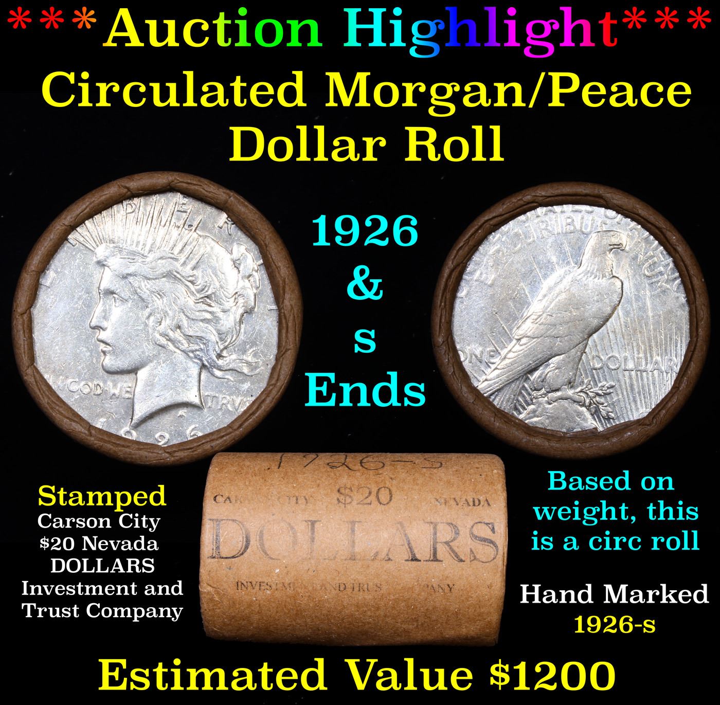***Auction Highlight*** Full solid Date 1926-s Peace silver dollar roll, 20 coin (fc)