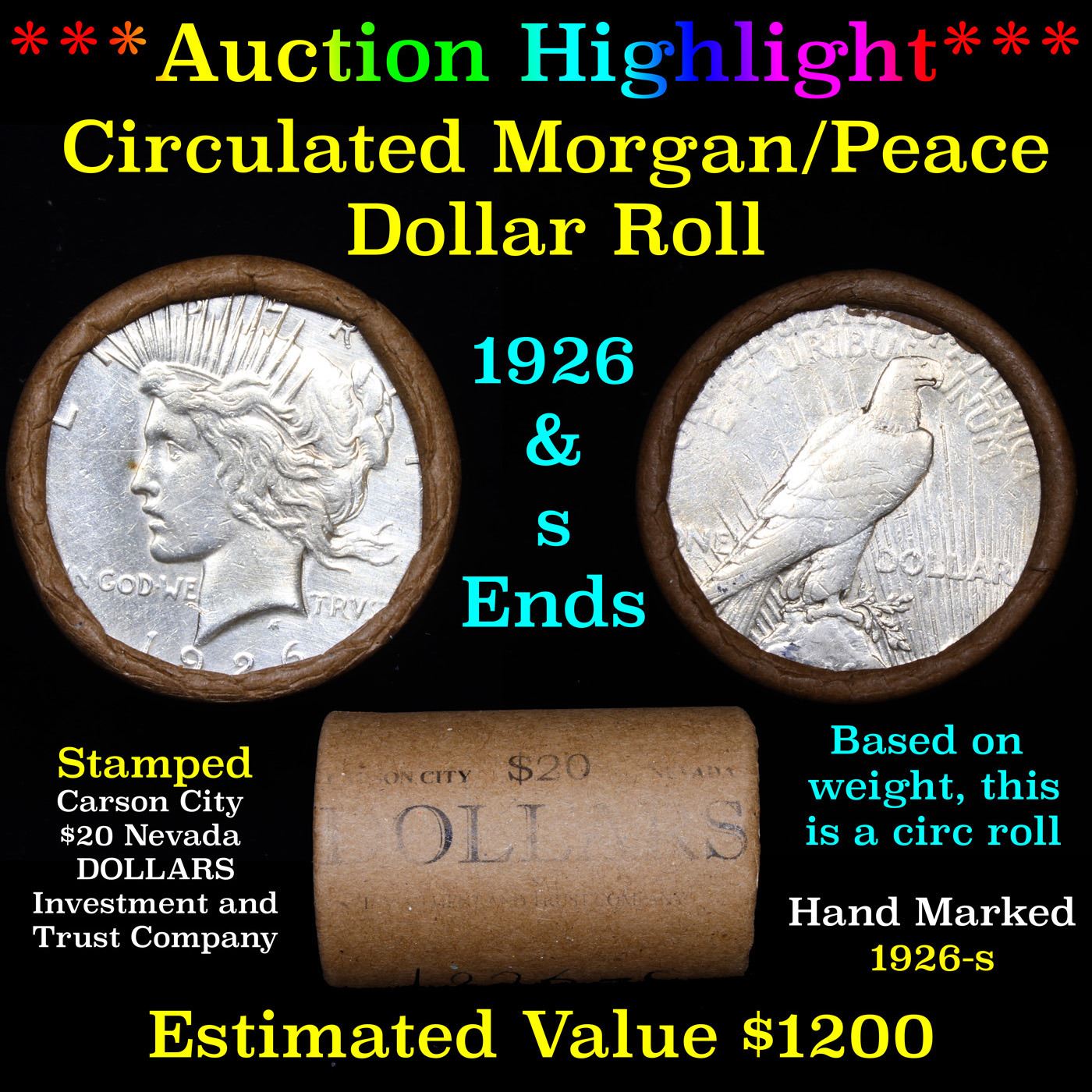 ***Auction Highlight*** Full solid Date 1926-s Peace silver dollar roll, 20 coin (fc)