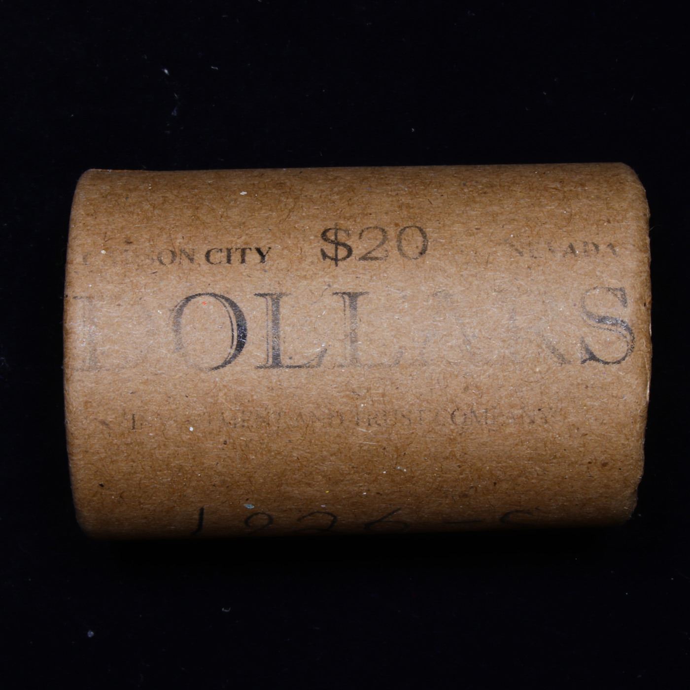***Auction Highlight*** Full solid Date 1926-s Peace silver dollar roll, 20 coin. This roll is held in an old Steel strong wrapper, patented 1921, stamped "Bankers Trust Company of Philadelphia, Walnut Street at Juniper. This roll contains 20, 1926-s Peace silver Dollars. The coins may range from circulated to uncirculated. Any condition is possible. We have weighed the roll and can assure you that it is 20 Silver Dollars, that all 20 are 1926-s and that it is not an uncirculated roll as the weight comes in slightly under the 534.60 grams that a fully uncirculated roll would weigh. We recently Acquired a large Estate Hoard of solid date Rolls. Trends lists au50 at $38, xf40 at $31.50, vf20 at $30.50