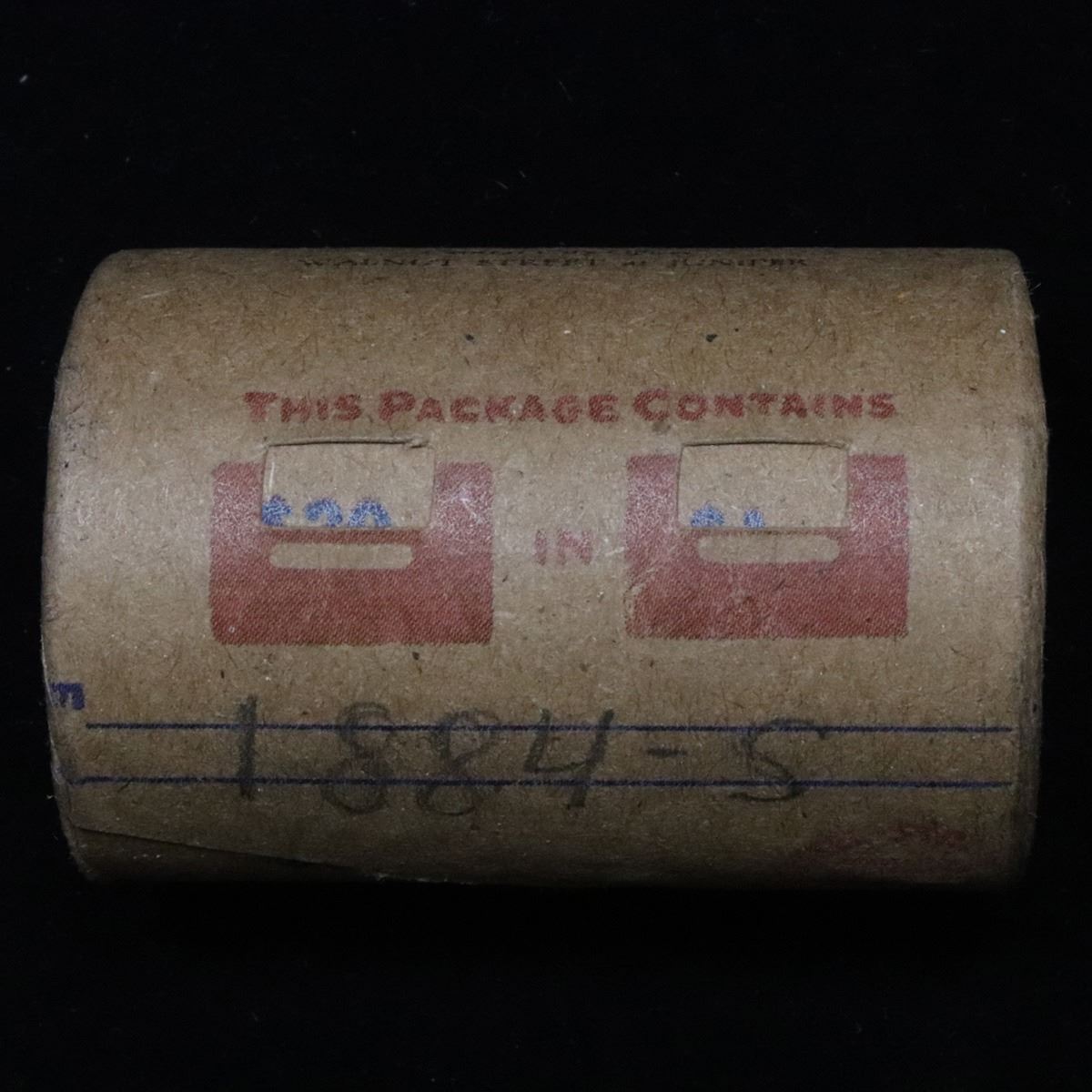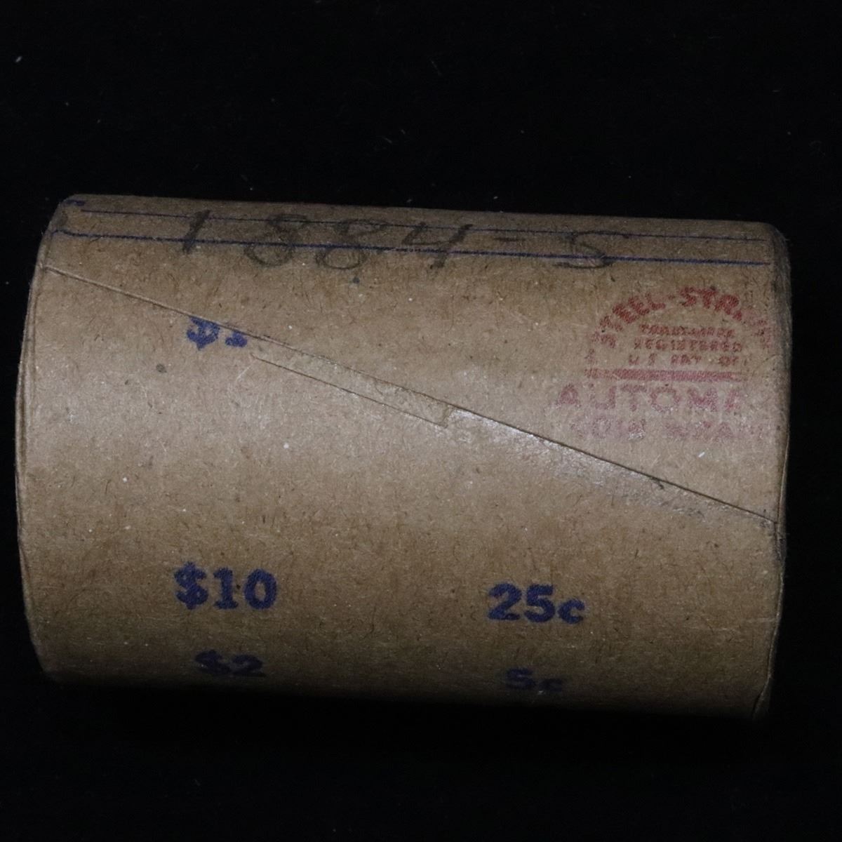 ***Auction Highlight*** Full solid Key date 1884-s Morgan silver dollar roll, 20 coins . .. This roll is held in an old Steel strong wrapper, patented 1921, stamped "Bankers Trust Company of Philadelphia, Walnut Street at Juniper. This roll contains 20, 1884-s Morgan silver Dollars. The coins may range from circulated to uncirculated. Any condition is possible. We have weighed the roll and can assure you that it is 20 Silver Dollars, that all 20 are 1884-s and that it is not an uncirculated roll as the weight comes in slightly under the 534.60 grams that a fully uncirculated roll would weigh. We recently Acquired a large Estate Hoard of solid date Rolls. Trends lists au50 at $240, xf40 at $130, vf20 at $75, f12 at $45, vg8 at $40, g4 at $35.