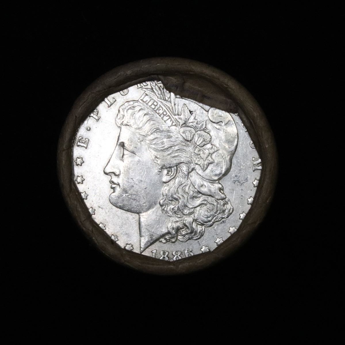 ***Auction Highlight*** Full solid Key date 1886-o Morgan silver dollar roll, 20 coins (fc)