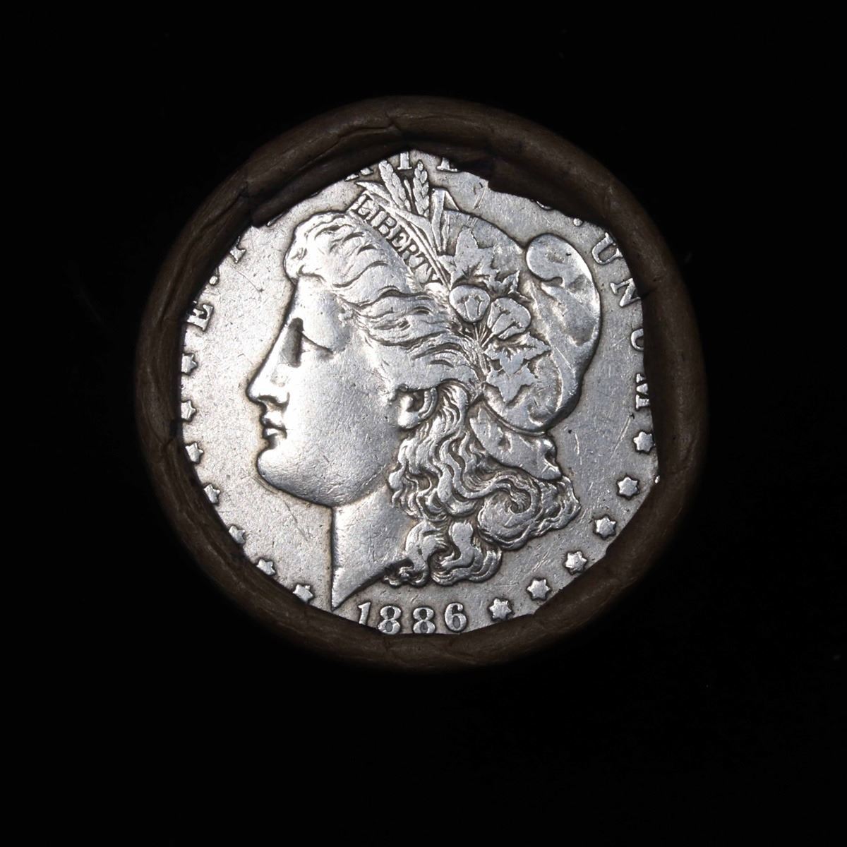 ***Auction Highlight*** Full solid Key date 1886-o Morgan silver dollar roll, 20 coins (fc)