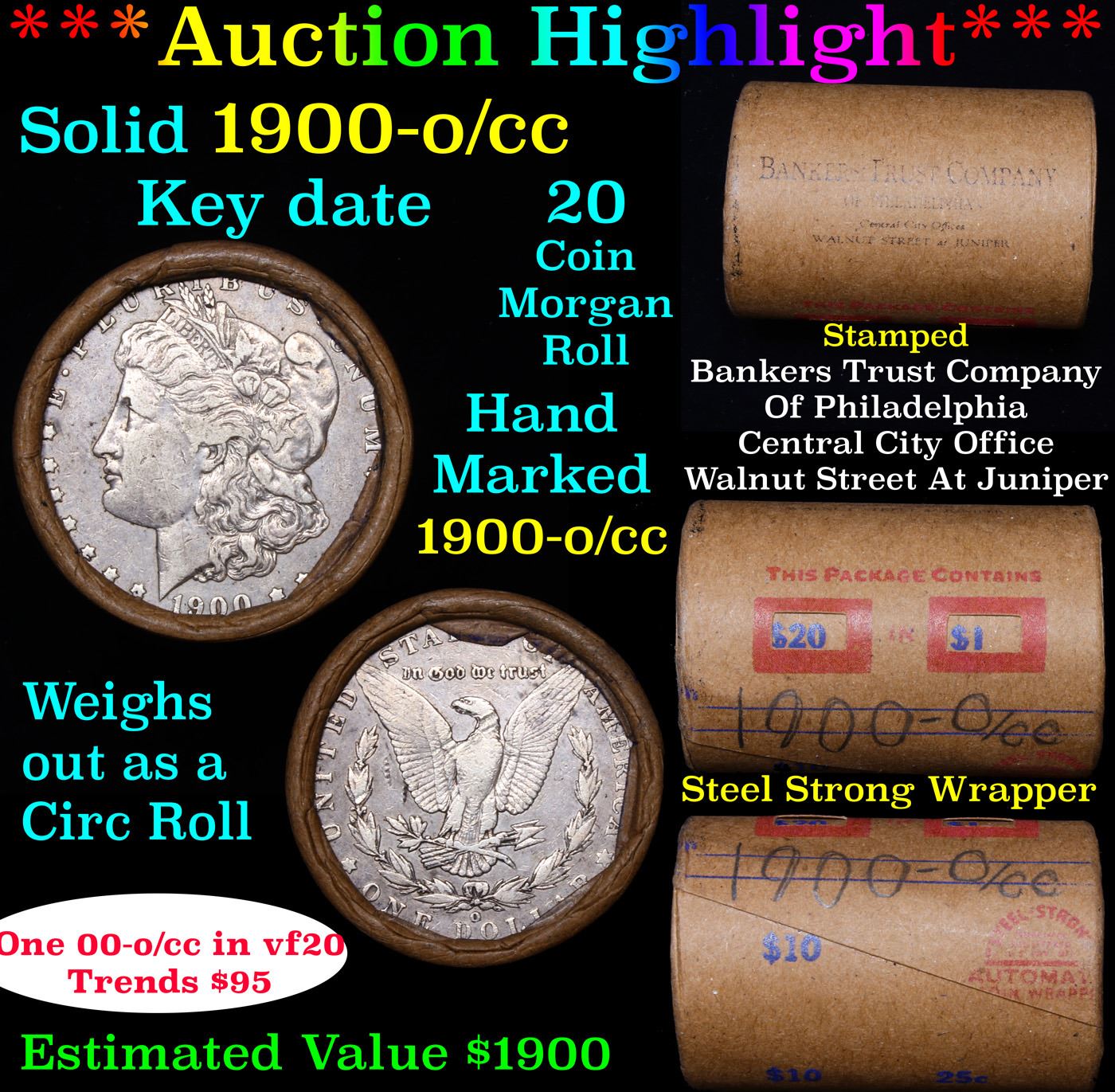 ***Auction Highlight*** Full solid Key date 1900-o/cc Morgan silver dollar roll, 20 coins (fc)