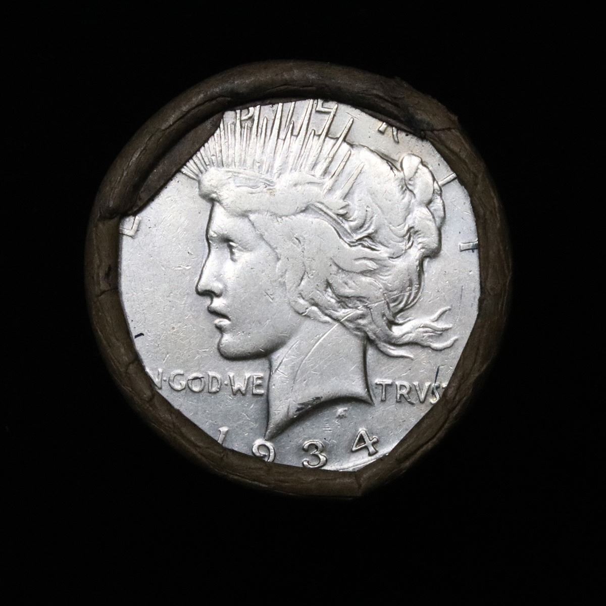 ***Auction Highlight*** Full solid Key date 1934-s Peace silver dollar roll, 20 coins (fc)