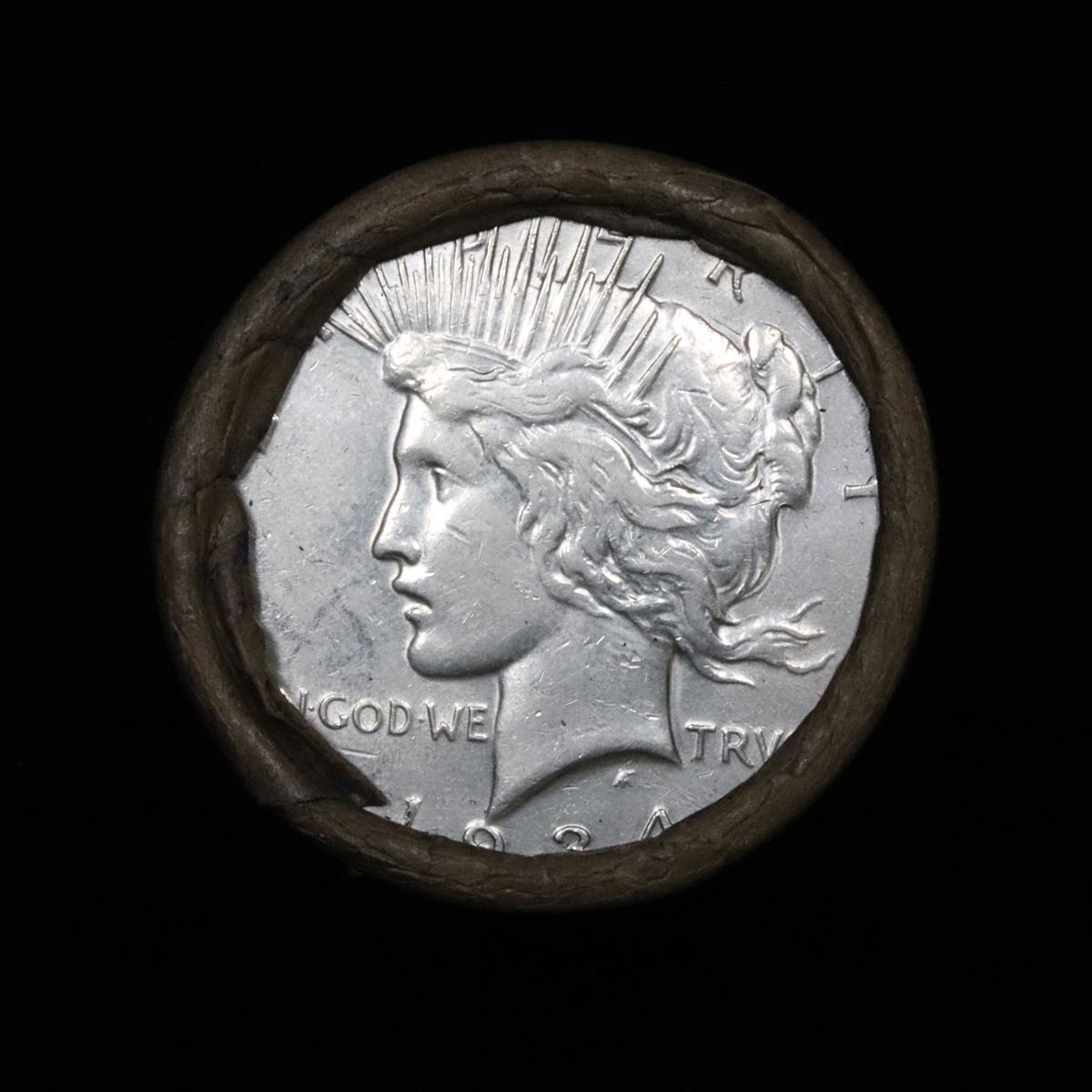 ***Auction Highlight*** Full solid Key date 1934-s Peace silver dollar roll, 20 coins (fc)