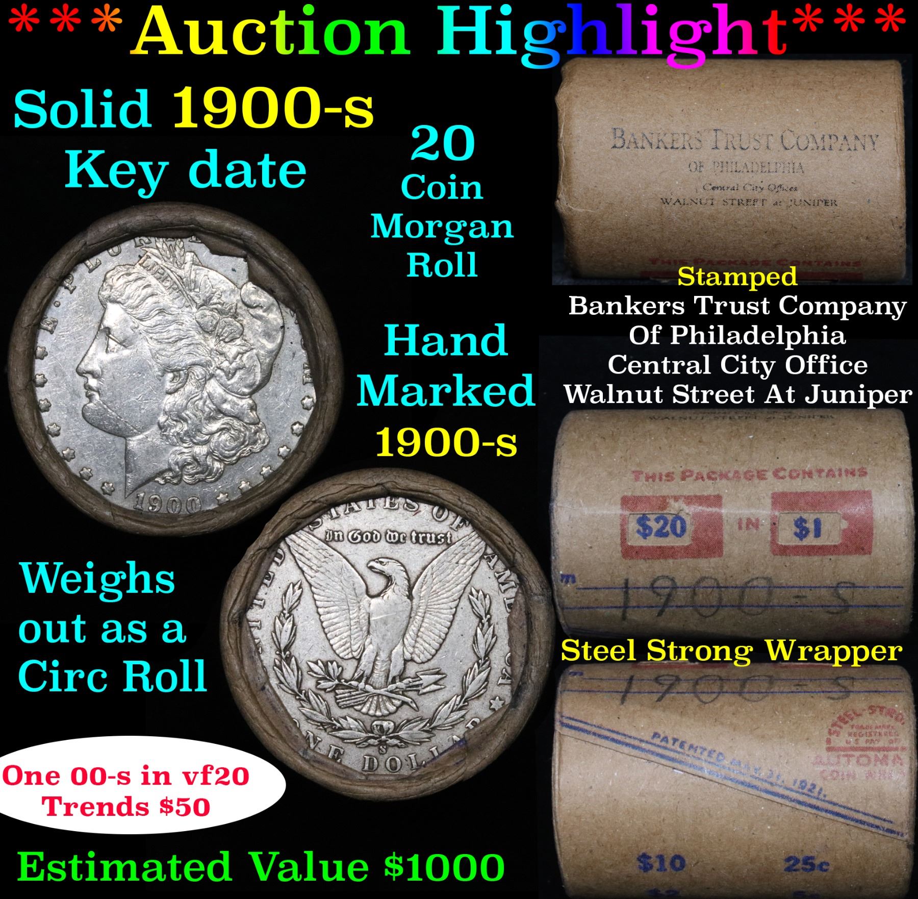 ***Auction Highlight*** Full solid Much Better date 1900-s Morgan silver dollar roll, 20 coins (fc)