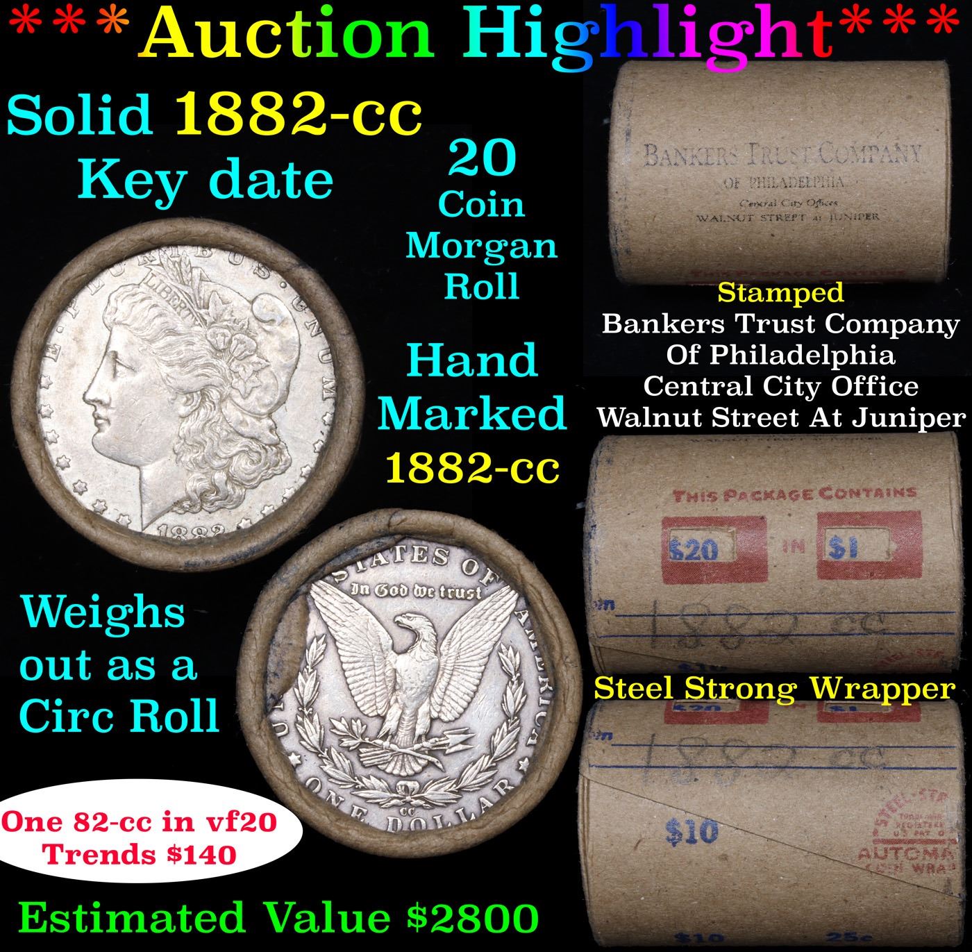 ***Auction Highlight*** Full solid Semi Key date 1882-cc Morgan silver dollar roll, 20 coins (fc)