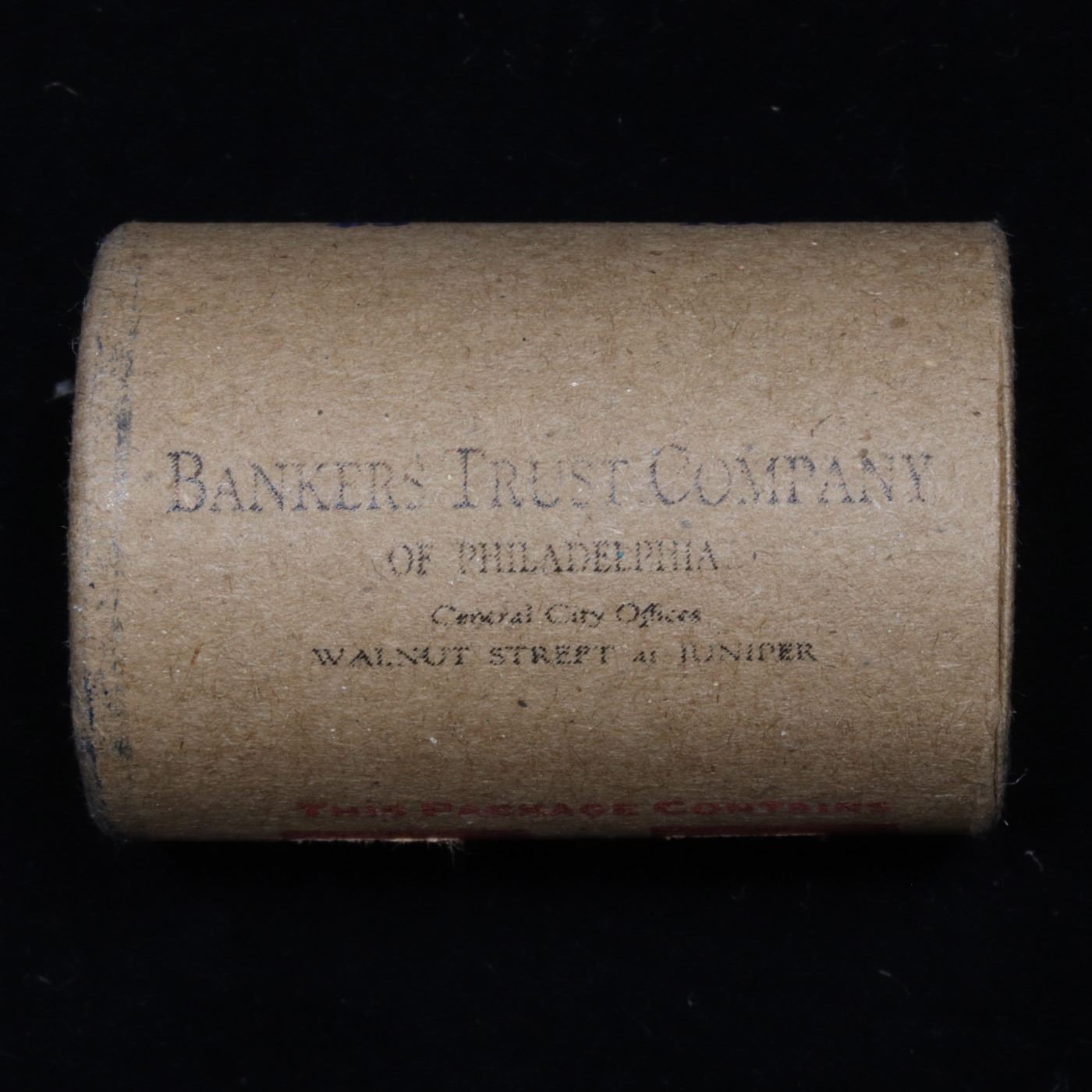 ***Auction Highlight*** Full solid Semi Key date 1882-cc Morgan silver dollar roll, 20 coins. This roll is held in an old Steel strong wrapper, patented 1921, stamped "Bankers Trust Company of Philadelphia, Walnut Street at Juniper. This roll contains 20, 1882-cc Morgan silver Dollars. The coins may range from circulated to uncirculated. Any condition is possible. We have weighed the roll and can assure you that it is 20 Silver Dollars, that all 20 are 1882-cc and that it is not an uncirculated roll as the weight comes in slightly under the 534.60 grams that a fully uncirculated roll would weigh. We recently Acquired a large Estate Hoard of solid date Rolls. Trends lists au50 at $170, xf40 at $160, vf20 at $140, f12 at $130, vg8 at $120, g4 at $115.