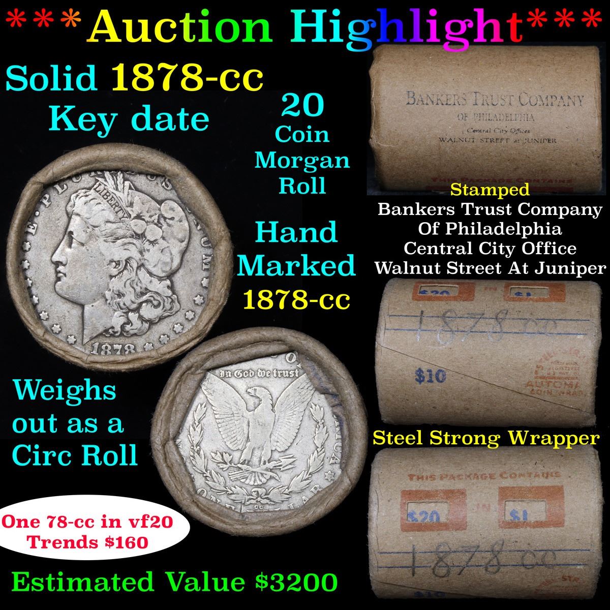 ***Auction Highlight*** Full solid date 1878-cc Morgan silver $1 roll, 20 coins (fc)