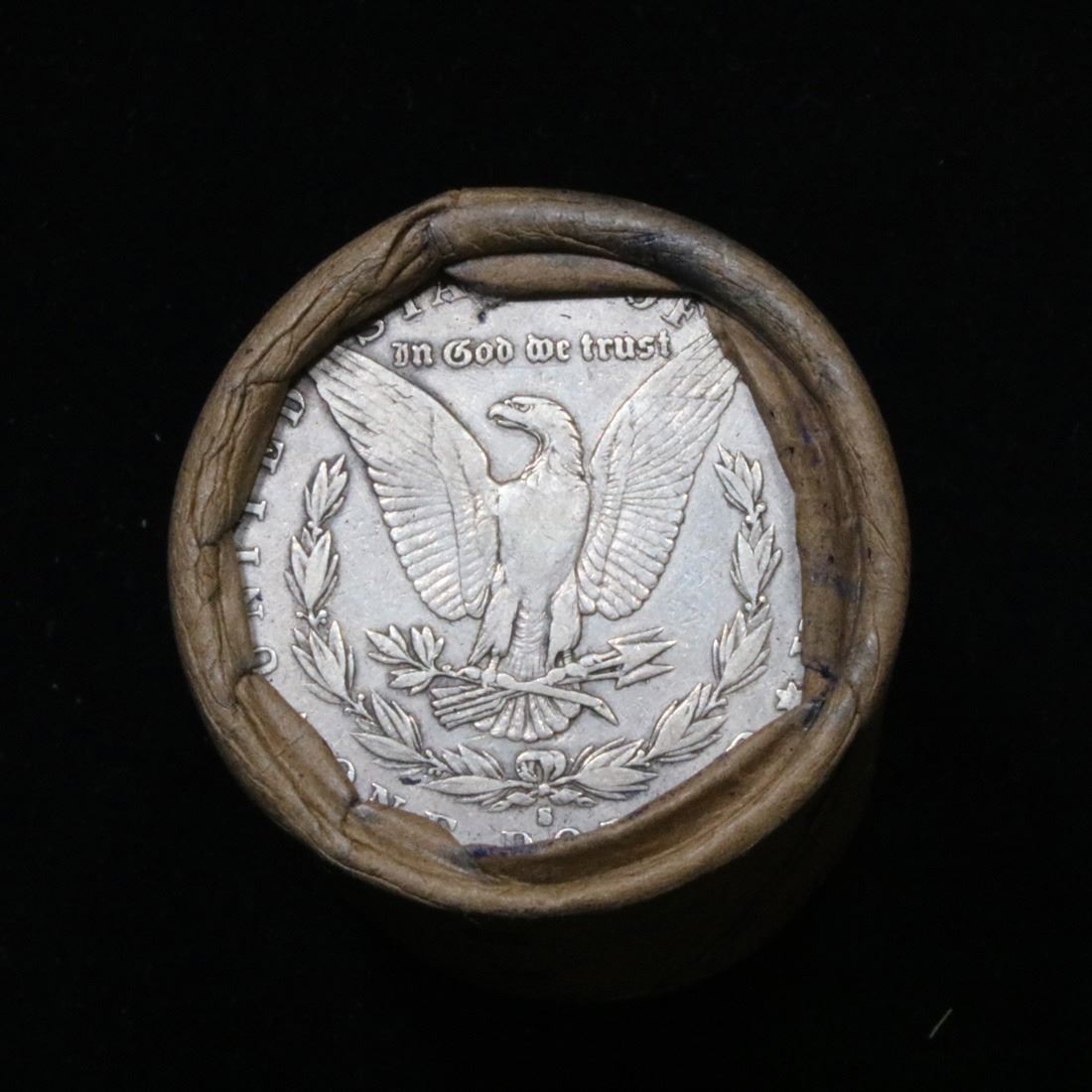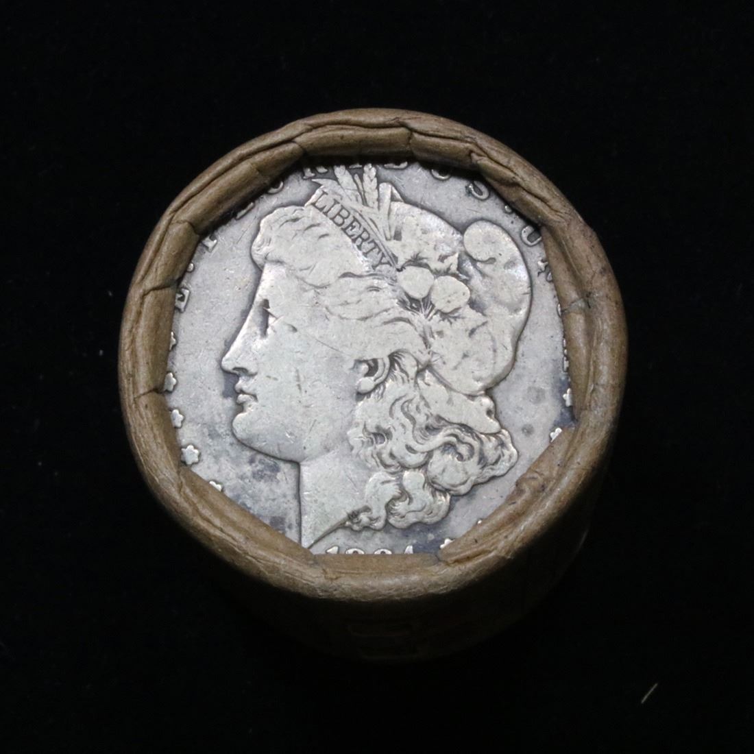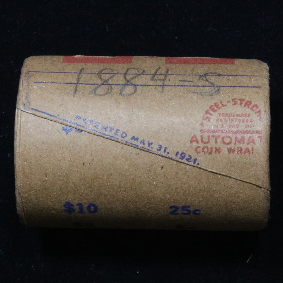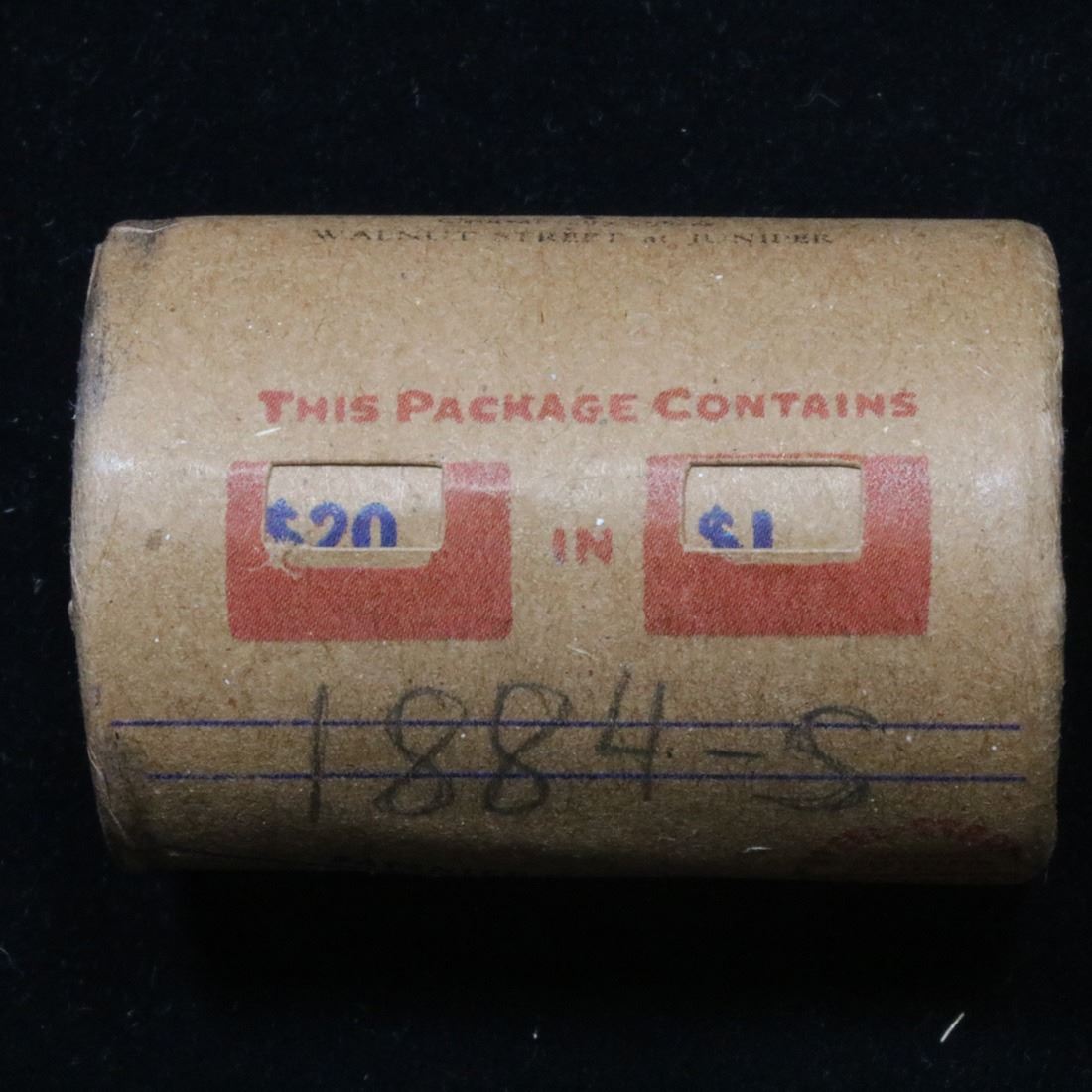 ***Auction Highlight*** Full solid date 1884-s Morgan silver dollar roll, 20 coins . This roll is held in an old Steel strong wrapper, patented 1921, stamped "Bankers Trust Company of PhiladelphiaÓ, Walnut Street at Juniper. This roll contains 20, 1884-s Morgan silver Dollars. The coins may range from circulated to uncirculated. Any condition is possible. We have weighed the roll and can assure you that it is 20 Silver Dollars, that all 20 are 1884-s and that it is not an uncirculated roll as the weight comes in slightly under the 534.60 grams that a fully uncirculated roll would weigh. We recently Acquired a large Estate Hoard of solid date Rolls. Trends lists au50 at $225, xf40 at $120, vf20 at $75, f12 at $45, vg8 at $40, g4 at $35.