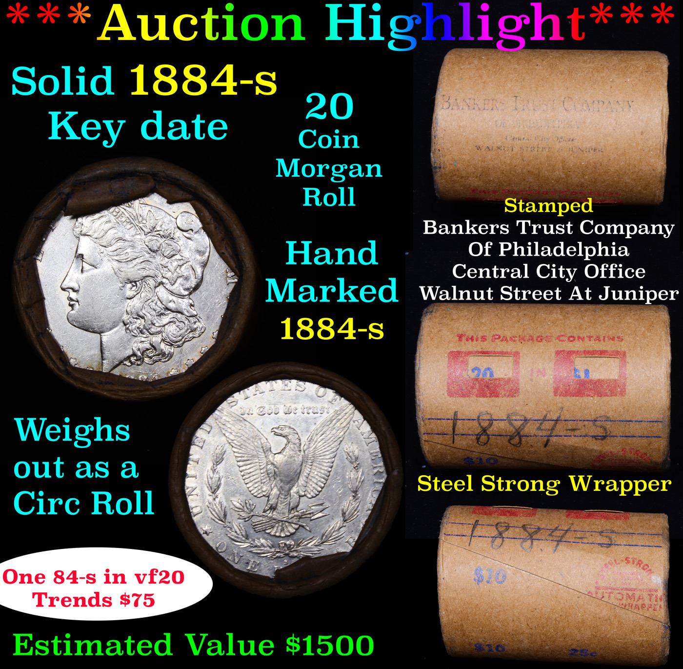 ***Auction Highlight*** Full solid date 1884-s Morgan silver dollar roll, 20 coins (fc)