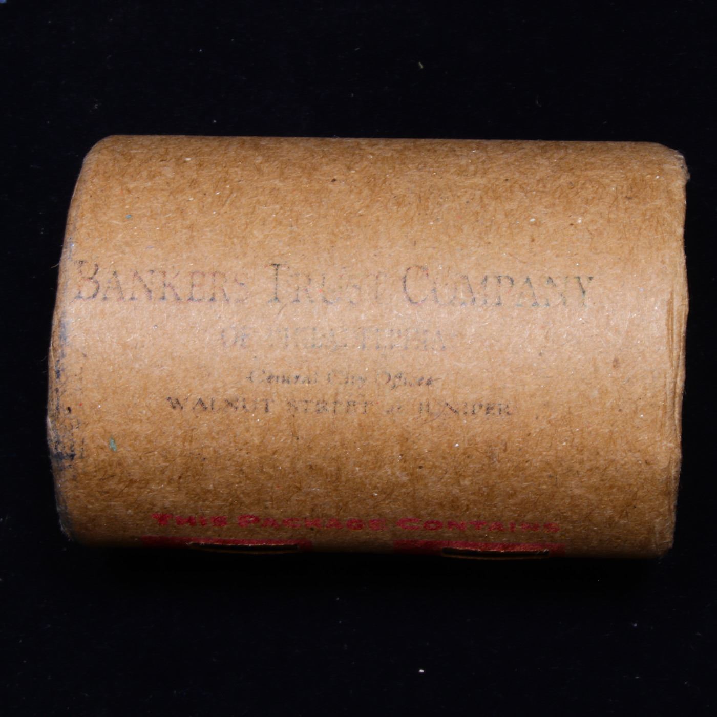 ***Auction Highlight*** Full solid date 1884-s Morgan silver dollar roll, 20 coins. This roll is held in an old Steel strong wrapper, patented 1921, stamped "Bankers Trust Company of PhiladelphiaÓ, Walnut Street at Juniper. This roll contains 20, 1884-s Morgan silver Dollars. The coins may range from circulated to uncirculated. Any condition is possible. We have weighed the roll and can assure you that it is 20 Silver Dollars, that all 20 are 1884-s and that it is not an uncirculated roll as the weight comes in slightly under the 534.60 grams that a fully uncirculated roll would weigh. We recently Acquired a large Estate Hoard of solid date Rolls. Trends lists au50 at $225, xf40 at $120, vf20 at $75, f12 at $45, vg8 at $40, g4 at $35.