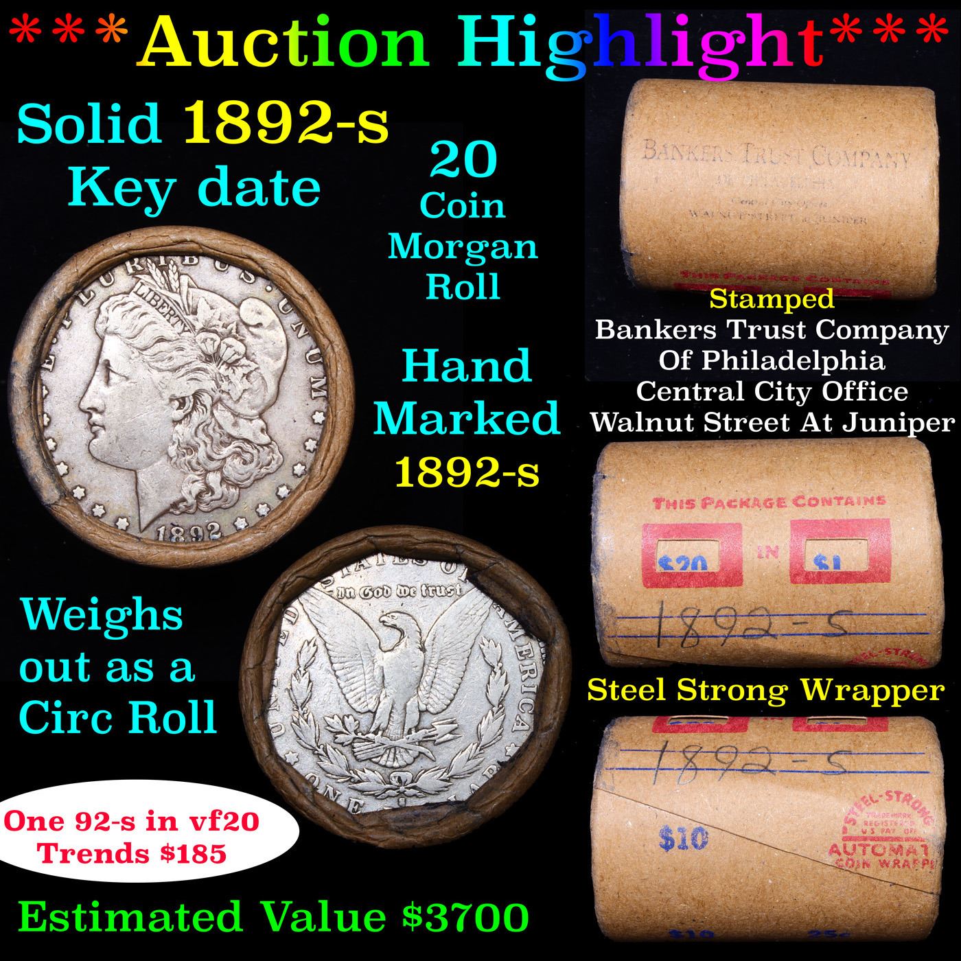 ***Auction Highlight*** Full solid date 1892-s Morgan silver $1 roll, 20 coins (fc)