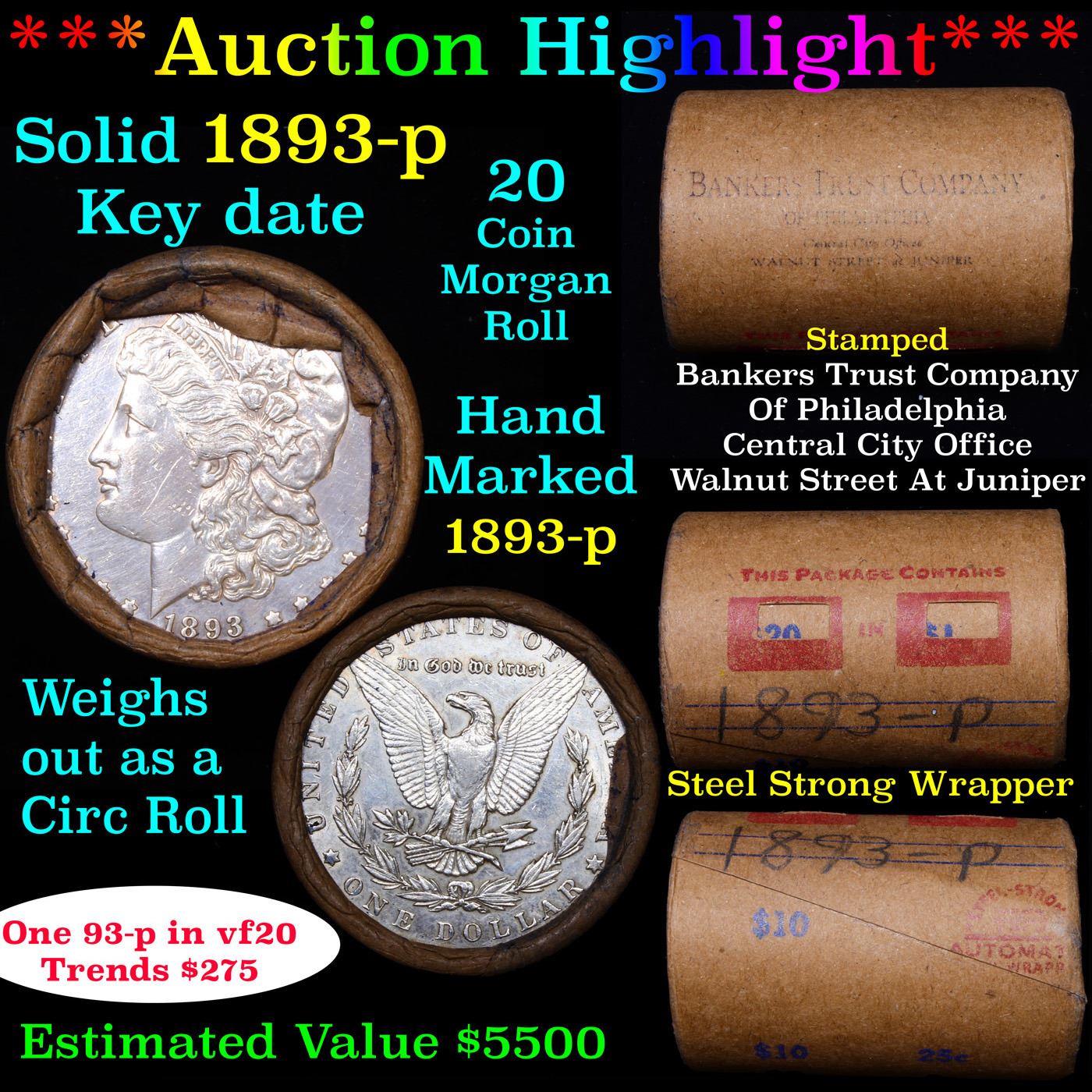 ***Auction Highlight*** Full solid date 1893-p Morgan silver $1 roll, 20 coins (fc)
