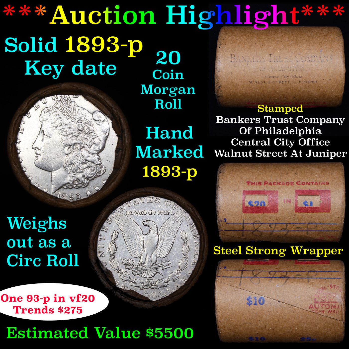 ***Auction Highlight*** Full solid date 1893-p Morgan silver $1 roll, 20 coins (fc)