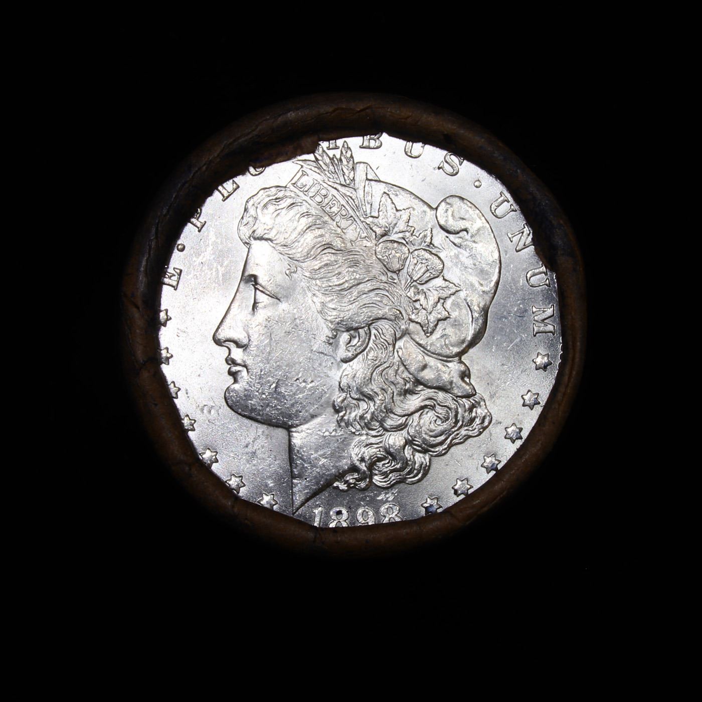 ***Auction Highlight*** Full solid date 1898-p Uncirculated Morgan silver dollar roll, 20 coins (fc)
