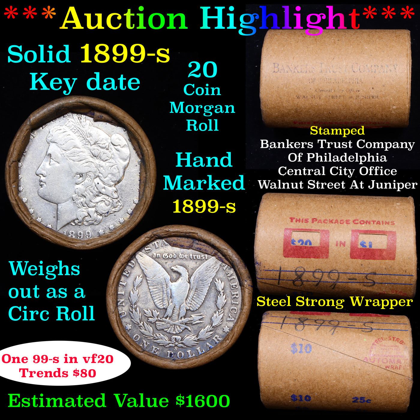 ***Auction Highlight*** Full solid date 1899-s Morgan silver $1 roll, 20 coins (fc)