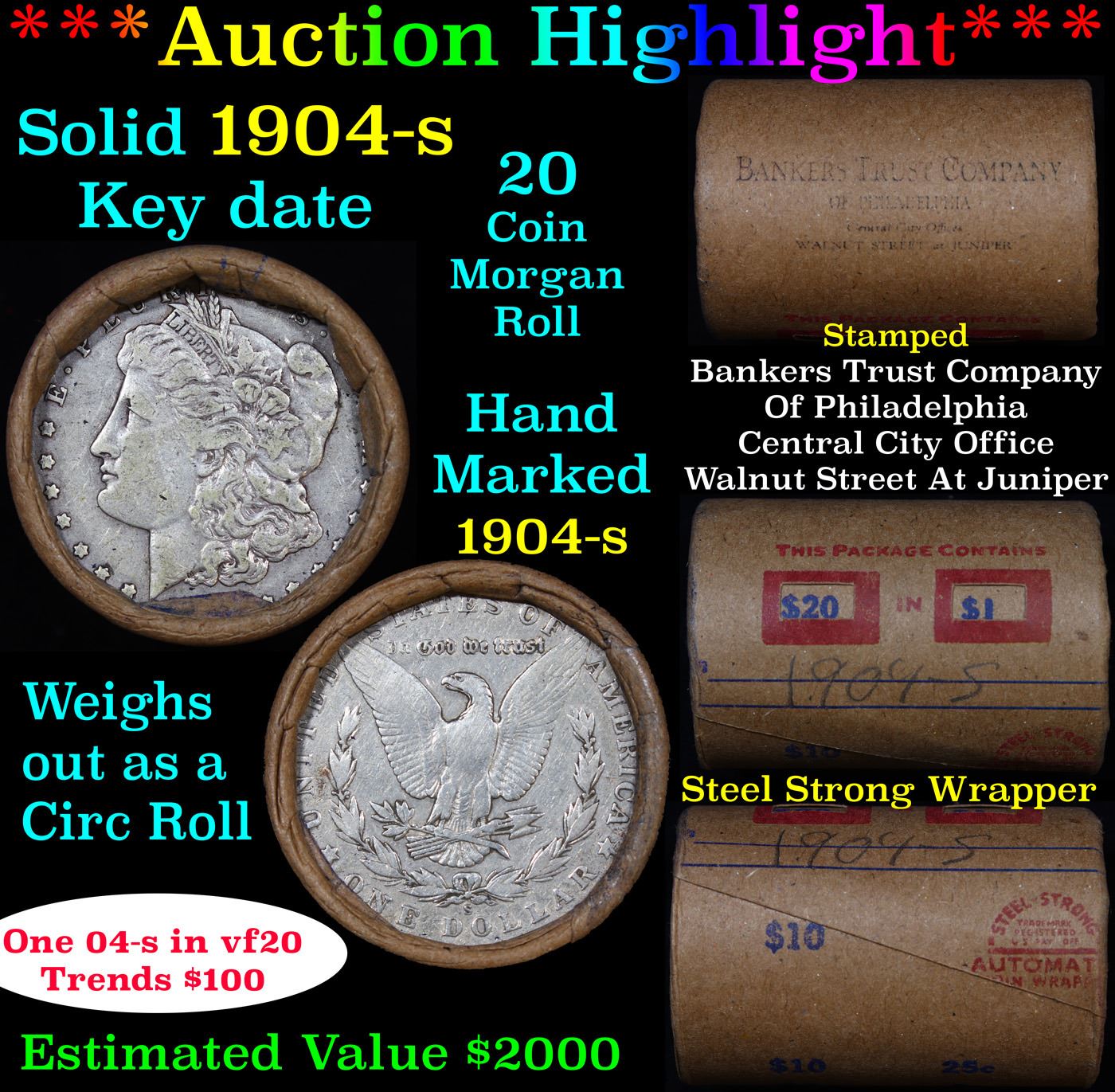 ***Auction Highlight*** Full solid date 1904-s Morgan silver $1 roll, 20 coins (fc)