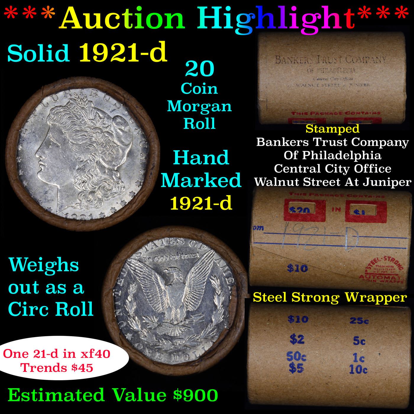 ***Auction Highlight*** Full solid date 1921-D Morgan silver $1 roll, 20 coins (fc)