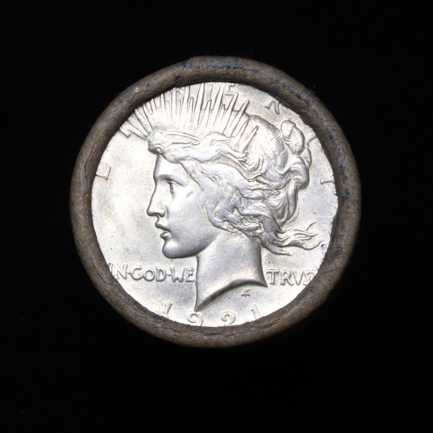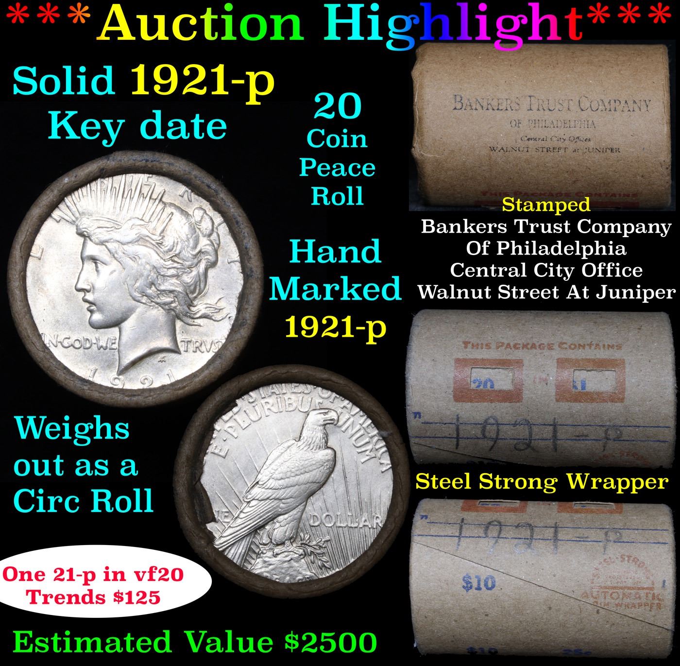 ***Auction Highlight*** Full solid date 1921-p KEY DATE Peace silver dollar roll, 20 coins (fc)