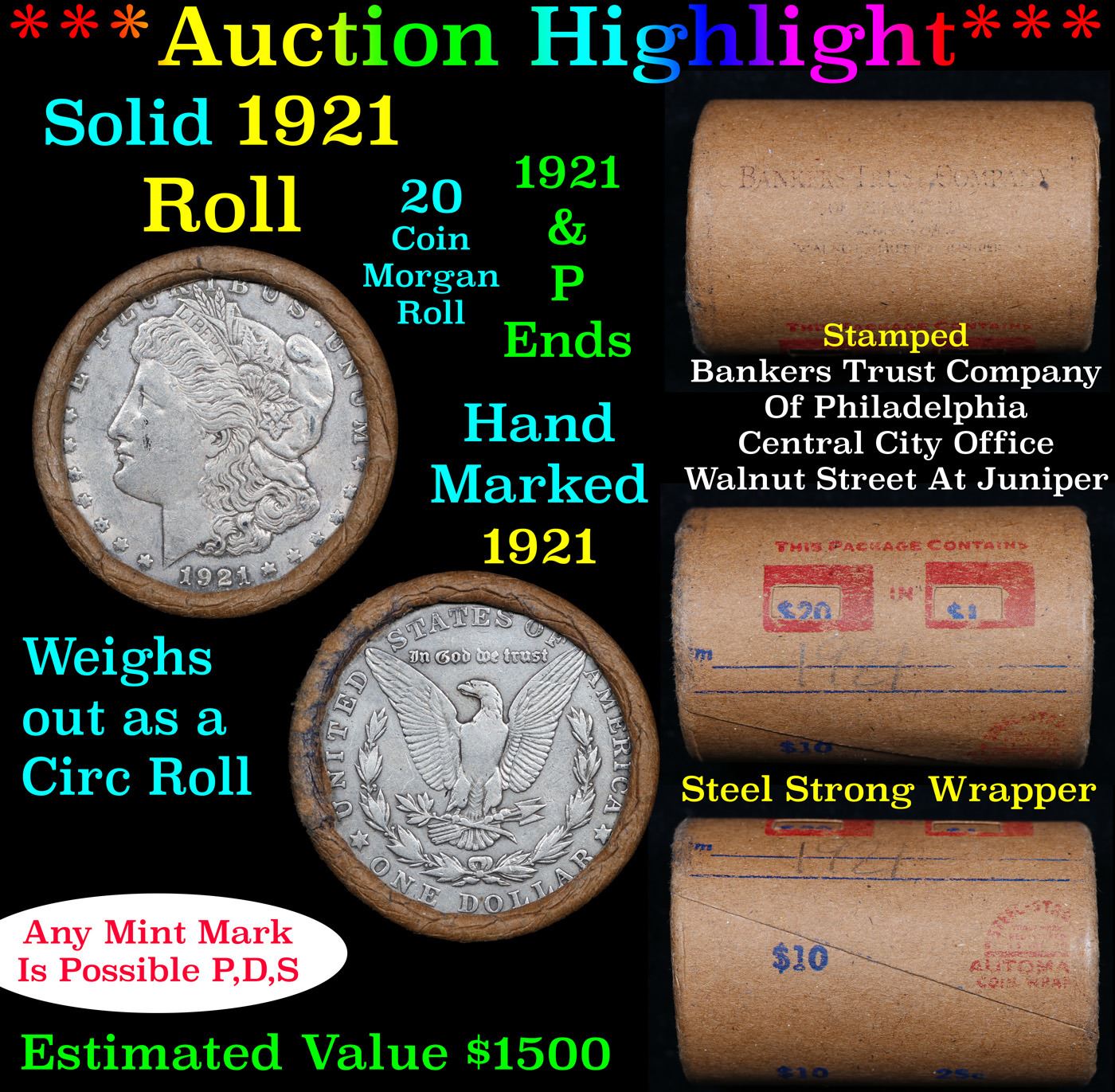 ***Auction Highlight*** Full solid date 1921-p Morgan silver $1 roll, 20 coins (fc)
