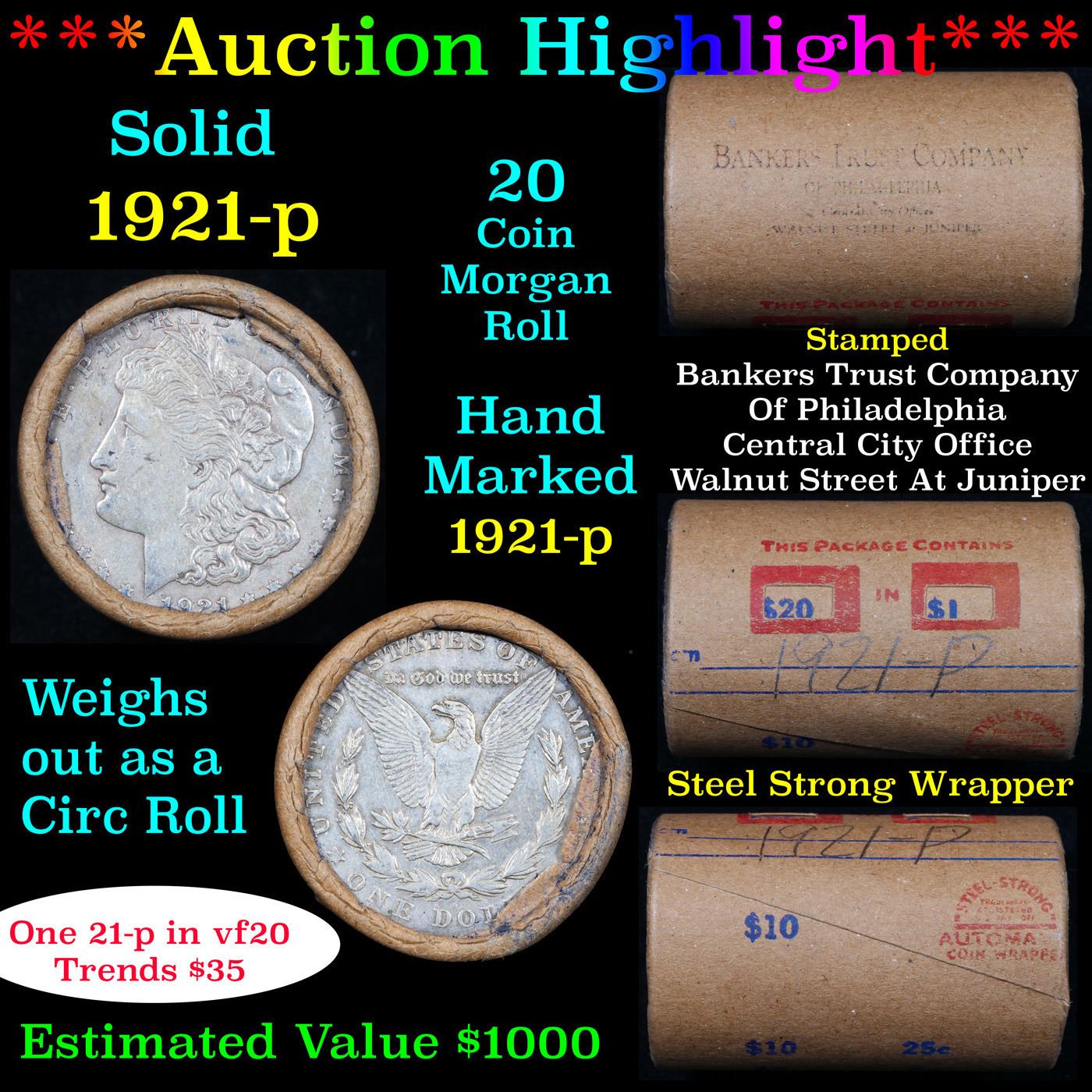 ***Auction Highlight*** Full solid date 1921-p Morgan silver $1 roll, 20 coins (fc)