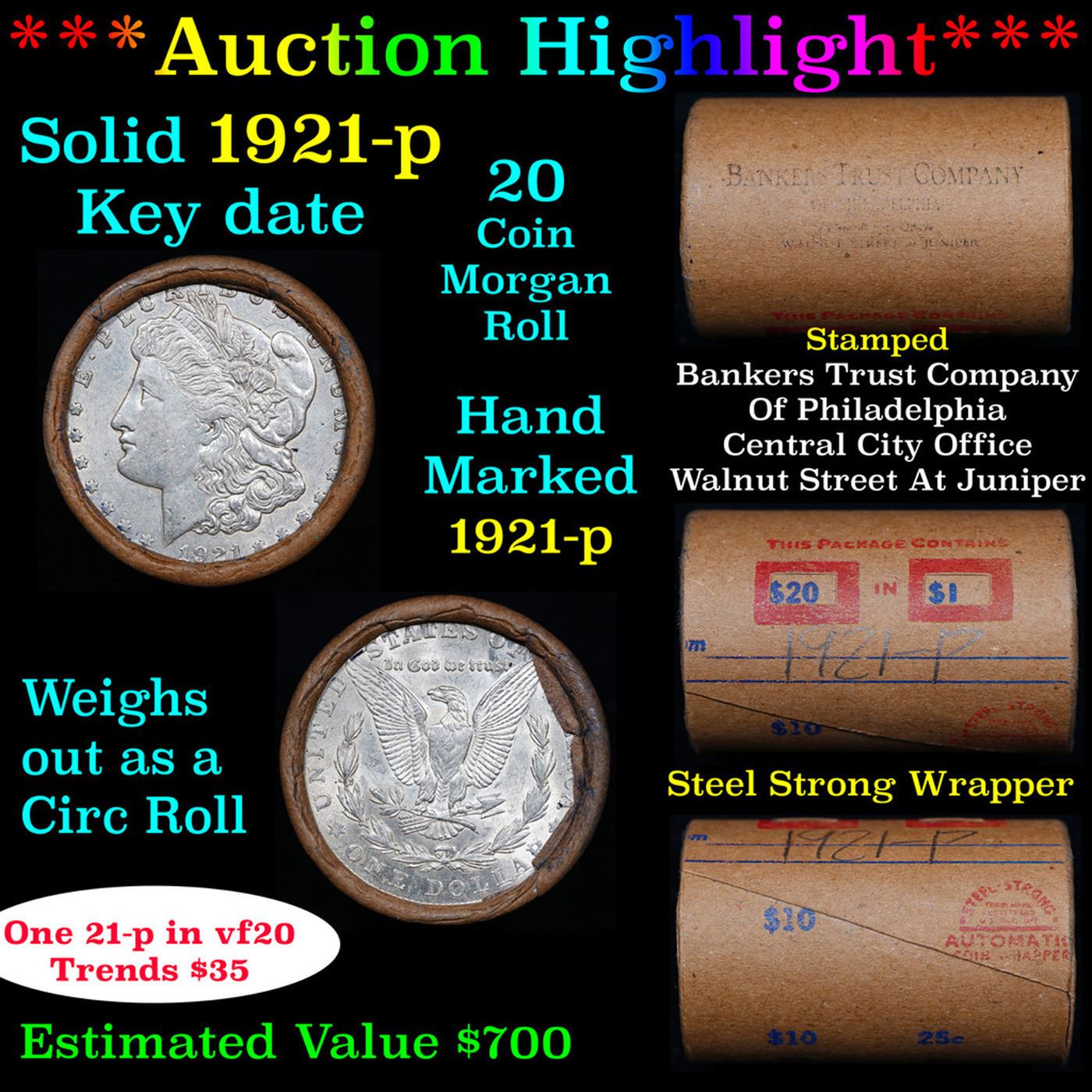 ***Auction Highlight*** Full solid date 1921-p Morgan silver $1 roll, 20 coins (fc)