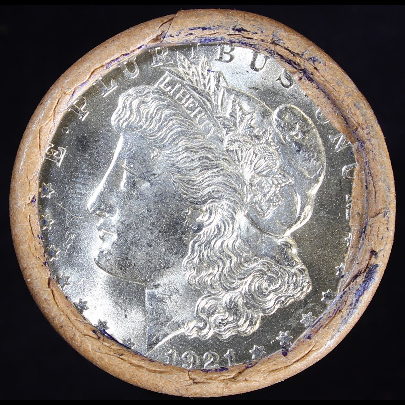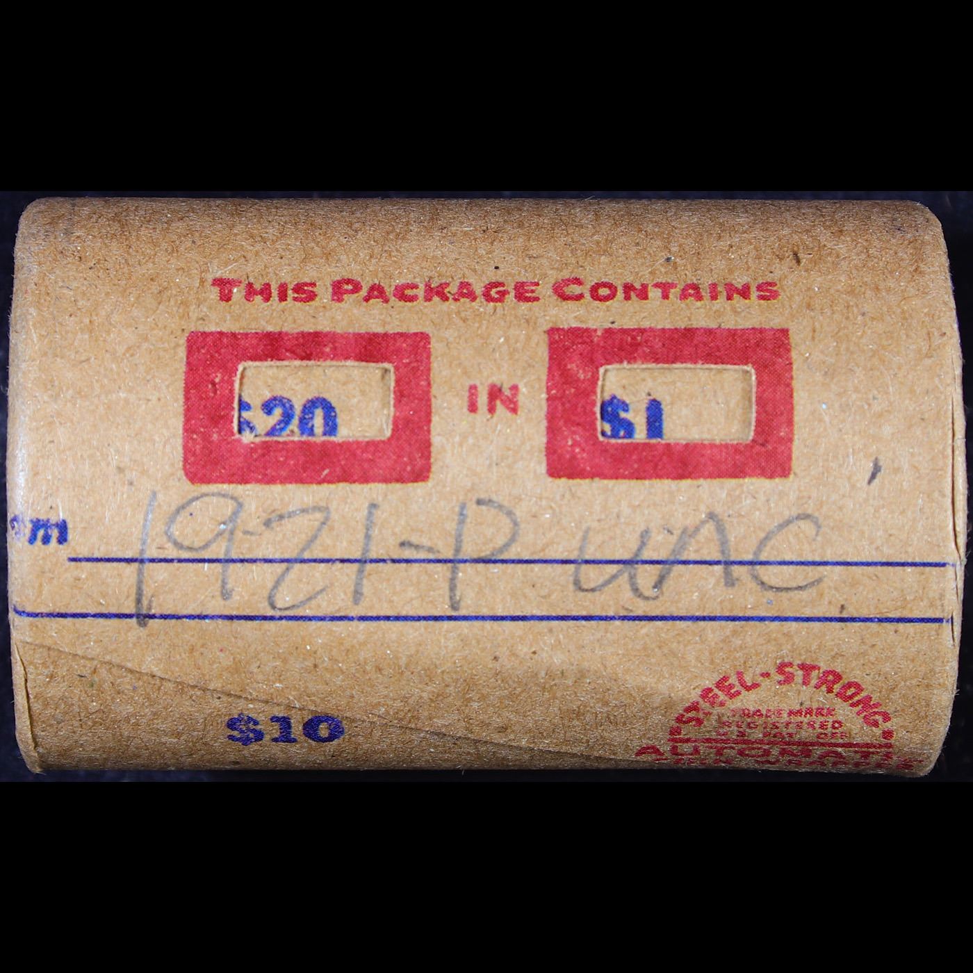 ***Auction Highlight*** Full solid date 1921-p Uncirculated Morgan silver dollar roll, 20 coins (fc)
