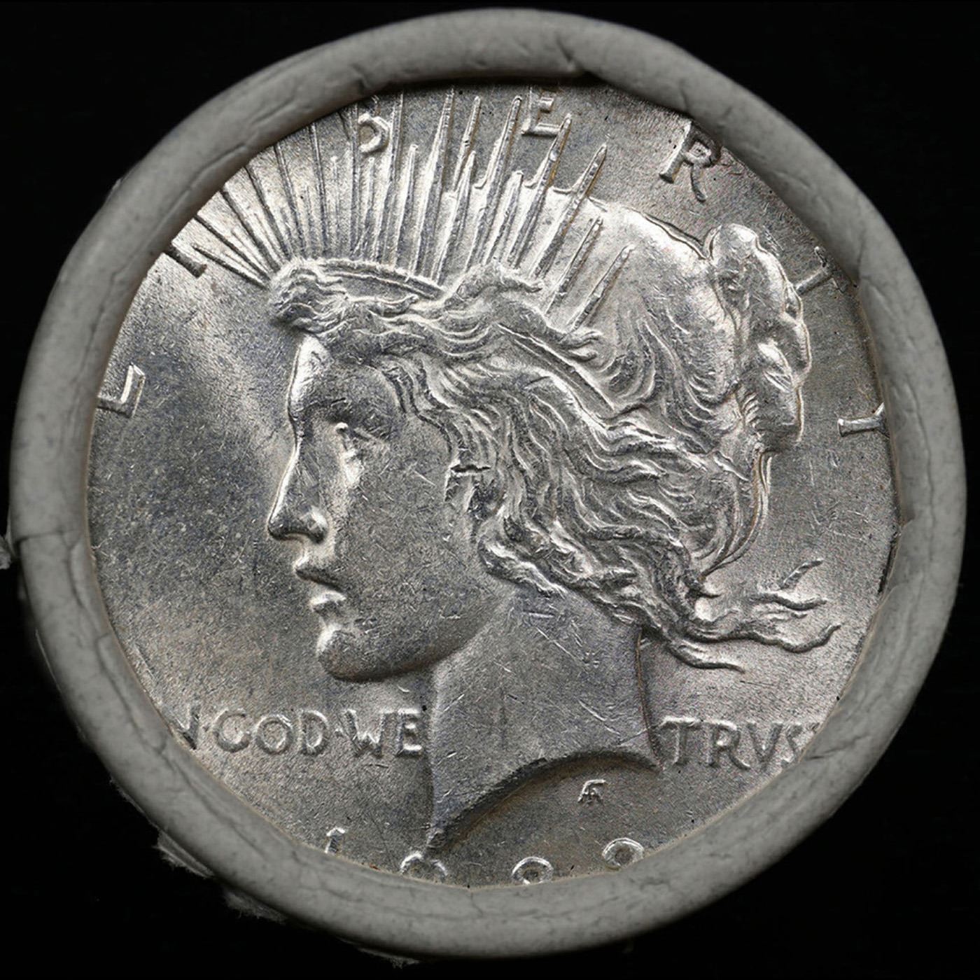 ***Auction Highlight*** Full solid date 1922-p Au/Bu Slider Peace silver dollar roll, 20 coins (fc)