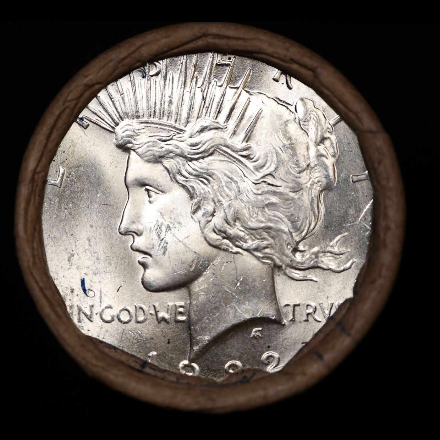 ***Auction Highlight*** Full solid date 1922-p Uncirculated Peace silver dollar roll, 20 coins (fc)