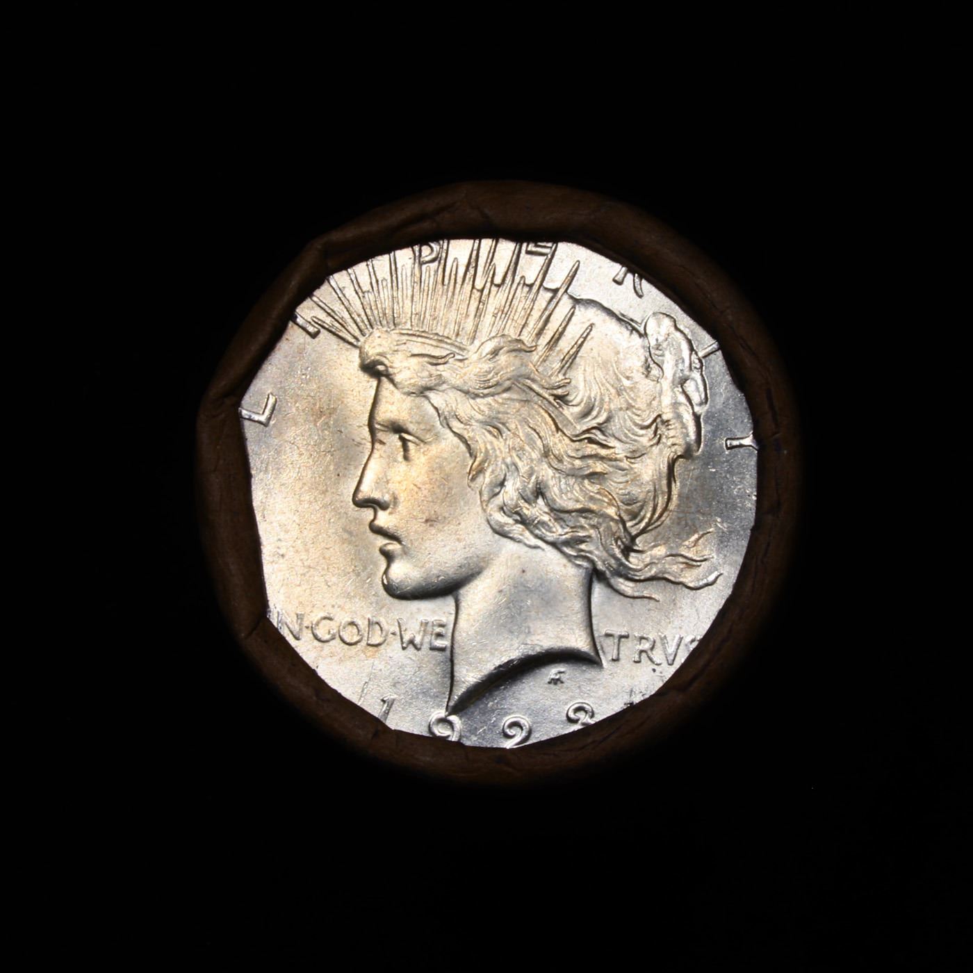 ***Auction Highlight*** Full solid date 1923-p Uncirculated Peace silver dollar roll, 20 coins (fc)