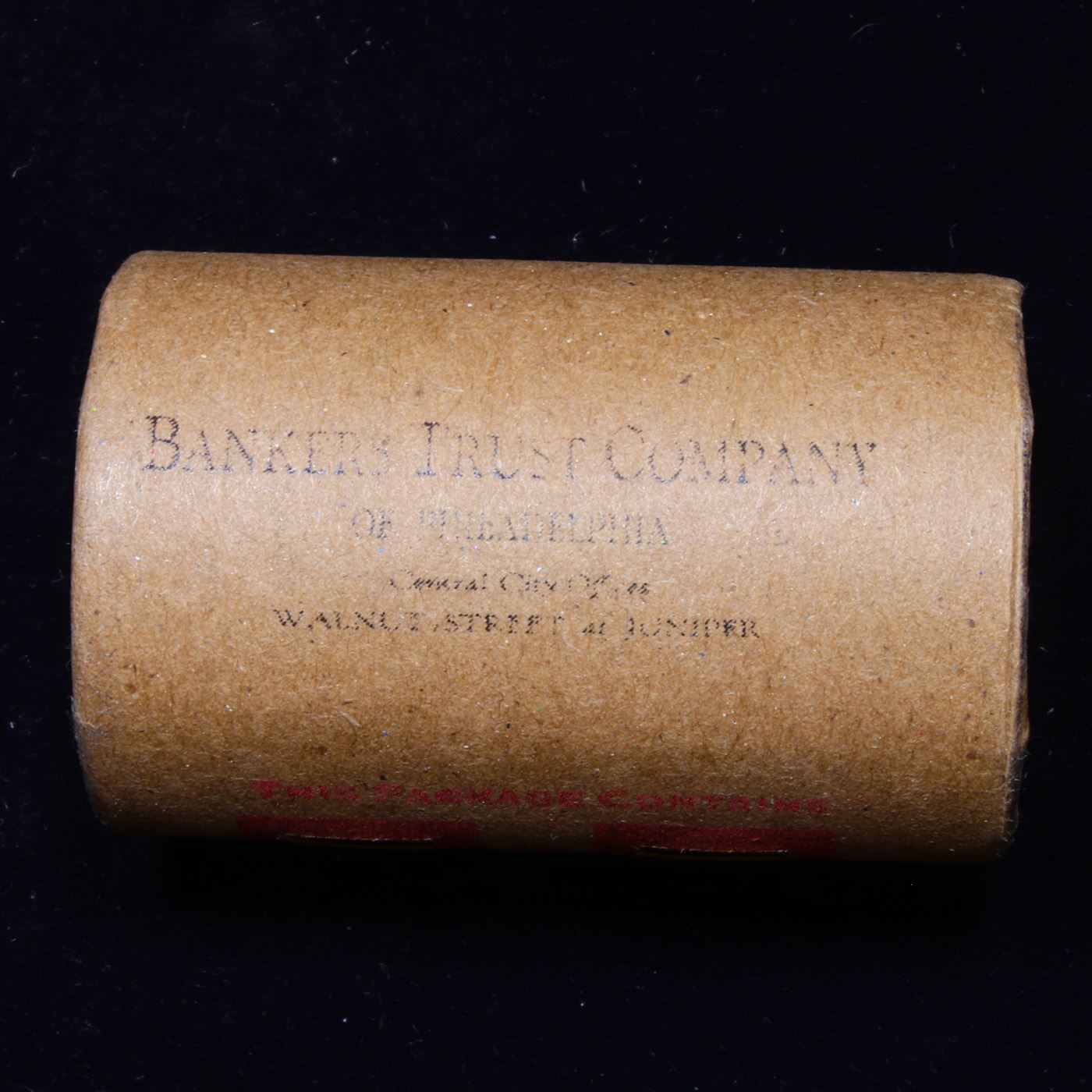 ***Auction Highlight*** Full solid date 1923-p Uncirculated Peace silver dollar roll, 20 coins. This roll is held in an old Steel strong wrapper, patented 1921, stamped "Bankers Trust Company of Philadelphia, Walnut Street at Juniper. 1923-p Uncirculated Peace Dollar Roll, Superb Ends. Weighs Perfectly as an Uncirculated Roll. Trends in ms64 is $60 and ms63 is $50. One ms66 is $415 and one ms65 is $100.