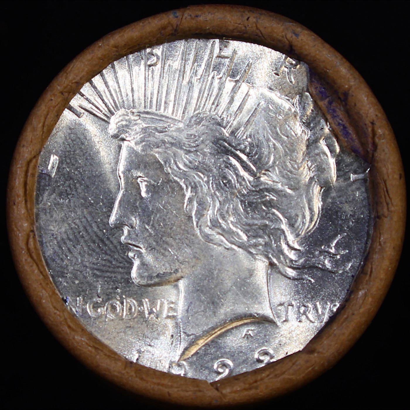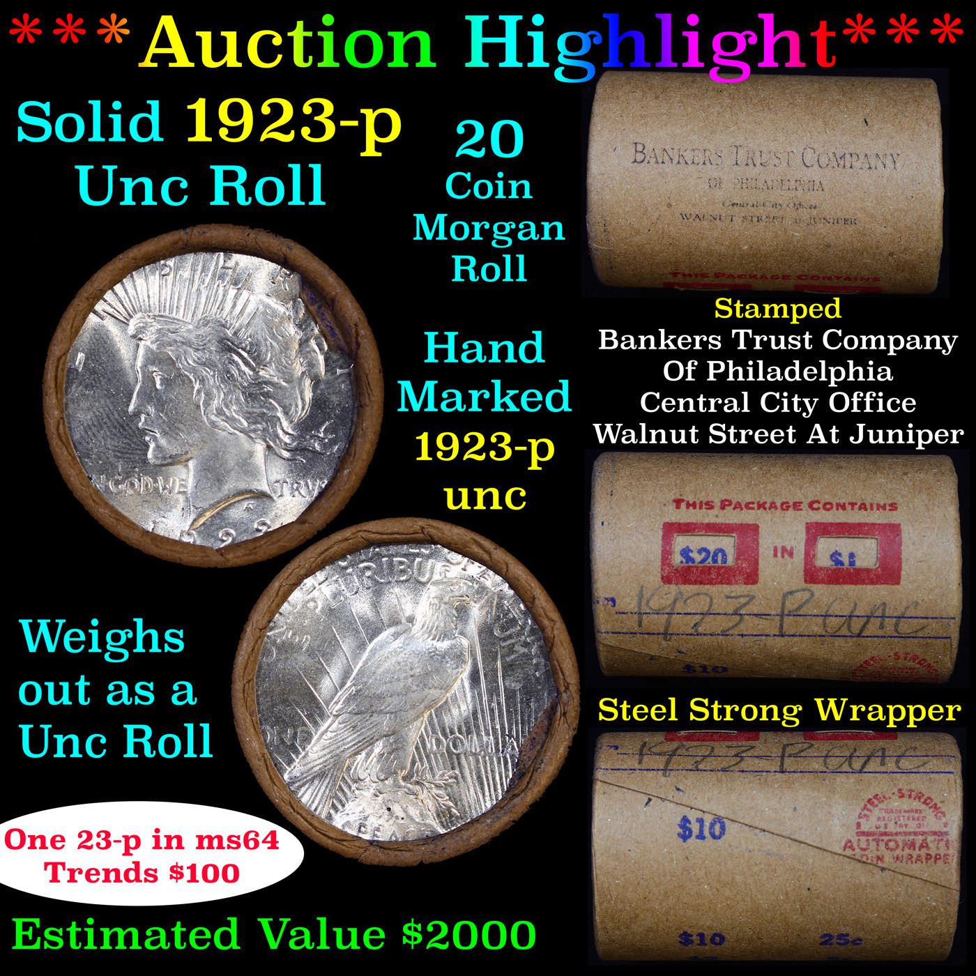 ***Auction Highlight*** Full solid date UNC 1923-p Peace silver $1 roll, 20 coins Unc (fc)