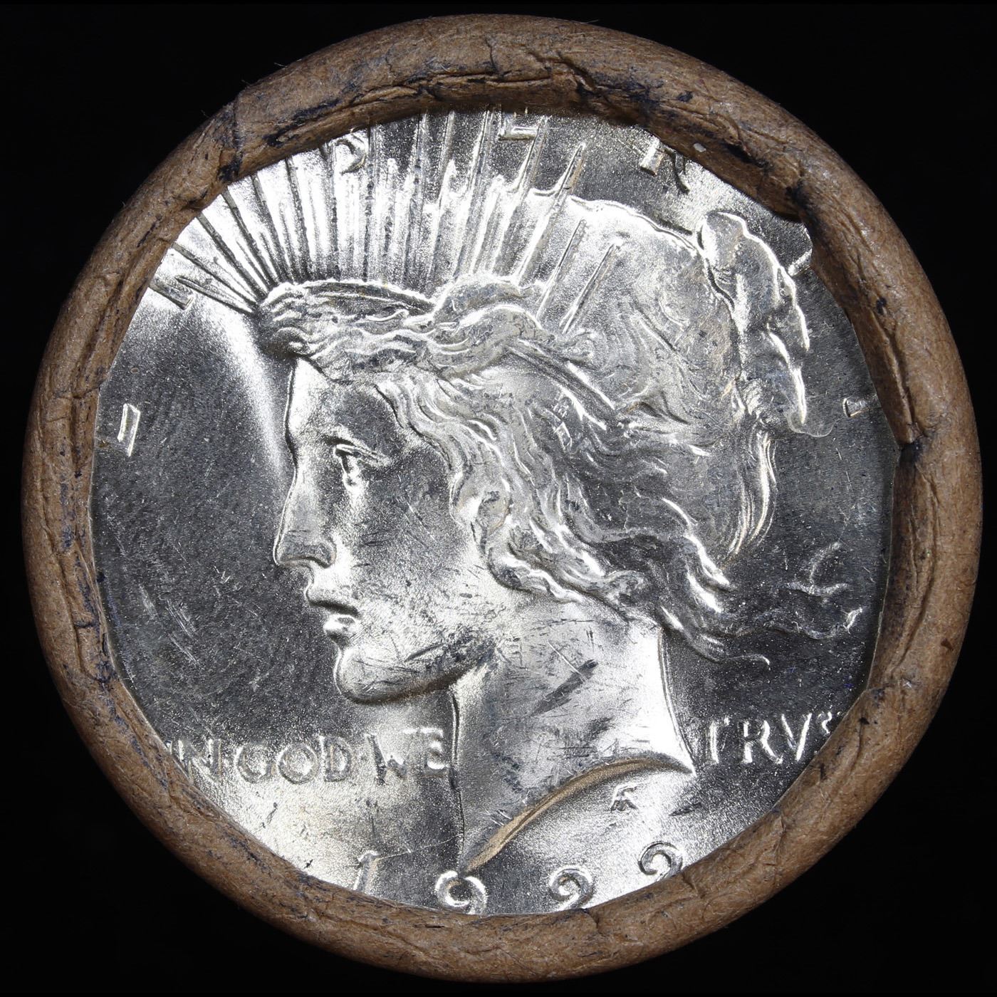 ***Auction Highlight*** Full solid date Uncirculated 1922-p Peace silver dollar roll, 20 coins (fc)
