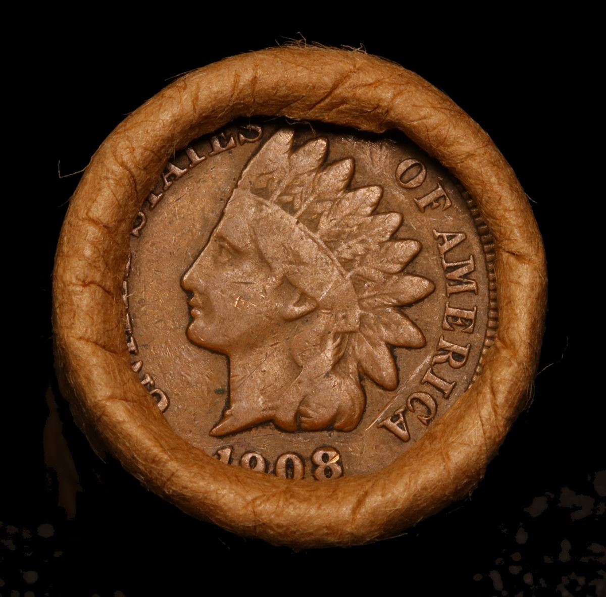 ***Auction Highlight*** Indian 1c Shotgun Roll, 1908 end, KEY date 's' mint on the other, Wow! (fc)
