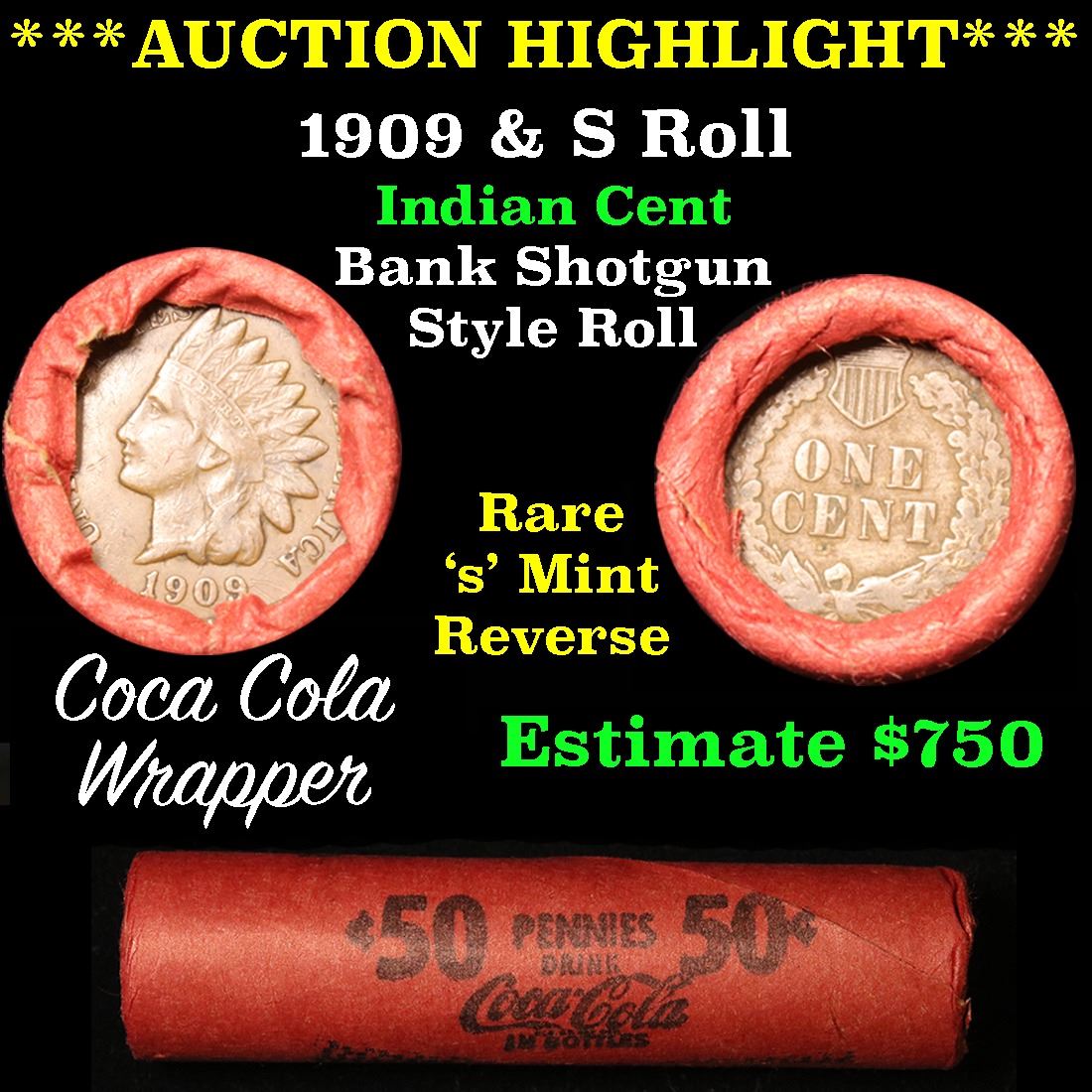 ***Auction Highlight*** Indian 1c Shotgun Roll, 1909 end, KEY date 's' mint on the other, Wow! . . (