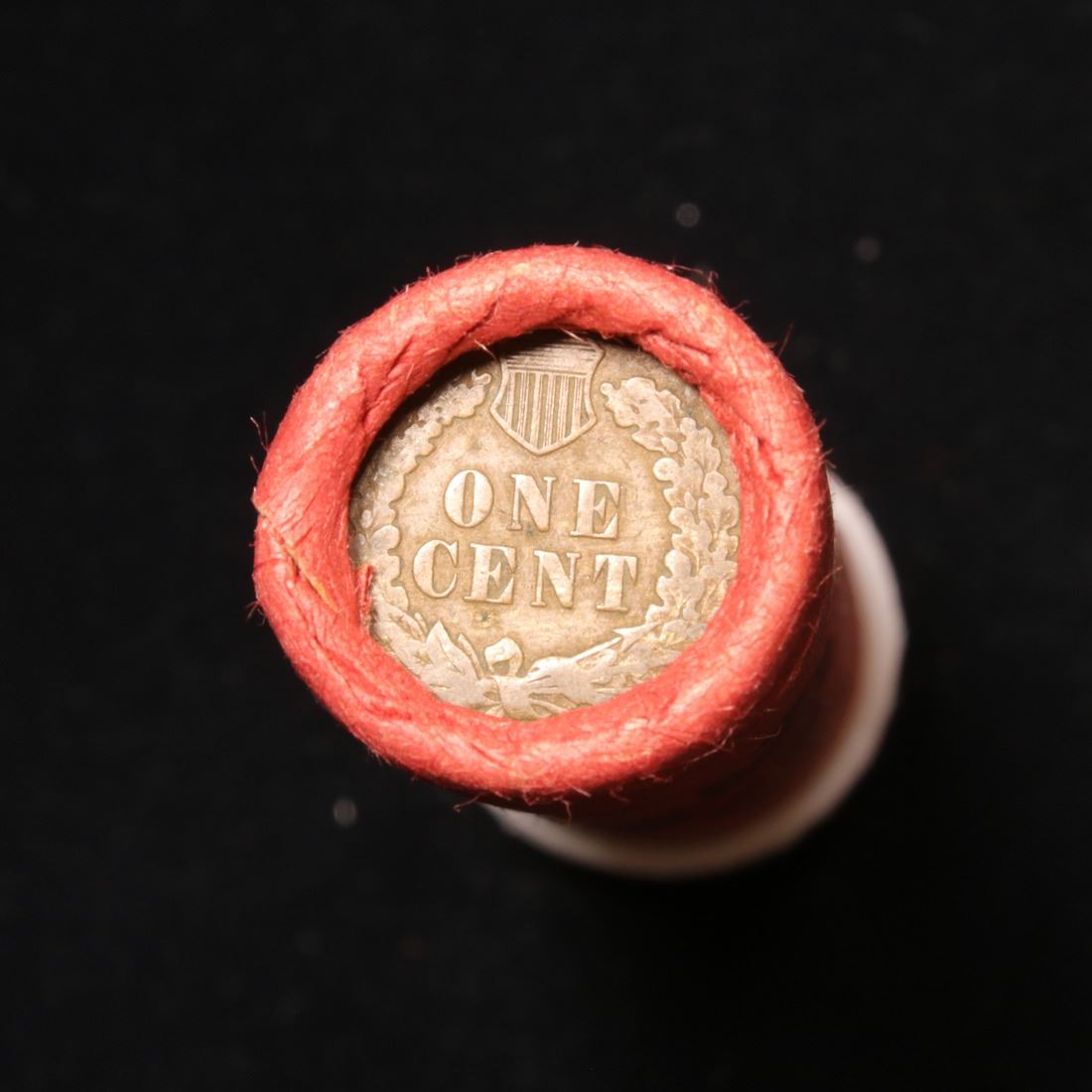 ***Auction Highlight*** Indian 1c Shotgun Roll, 1909 end, KEY date 's' mint on the other, Wow! . .. The Roll is in an old HF String & Sons coin wrapper'. A great bank style shotgun roll of Indian cents 1c with very tight ends. We have not had much feedback yet, but from what we have been told, the rolls appear to be filled with a mixture of 1800's and 1900's. These shotgun rolls are all from a new consignee. They are all frrom one Estate. This particular Roll shows an 1909 on one end and a KEY date 's' mint on the reverse WOW!.